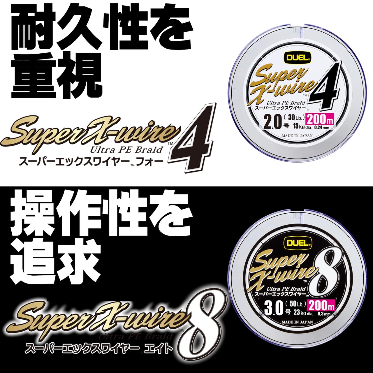 【在庫処分】DUEL (デュエル) PEライン 釣り糸 スーパーエックスワイヤー4 【 ライン 釣りライン 釣具 高強度 高感度 】 0.6号~2.0号 5色/イエローマーキング | GIGATERA