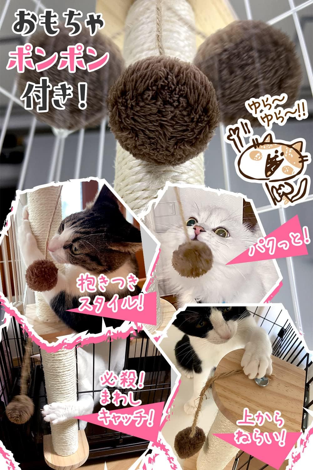 ??【ポンポンおもちゃ付き!】爪とぎだけでなく、毛玉のポンポン付きなので、まだ爪とぎに慣れていないねこちゃんでも、まずはポンポン遊びからはじめてみてください。すぐお気に入り場所になることでしょう。