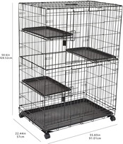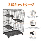 ベーシック 猫ケージ キャットケージ 大型 3段 91L x 57W x 129H cm 折り畳み式 ブラック