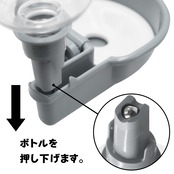 この水ボトルは内外の気圧のバランスを保つことで水漏れを防止します。ただし、ボトルの底が完全に取り付けられていない場合、空気が内部に入り込み、内外の圧力バランスが崩れて水漏れの原因になる可能性があります。そのため、使用前に水ボトルの取り付けが正しく行われているかを確認することをおすすめします。