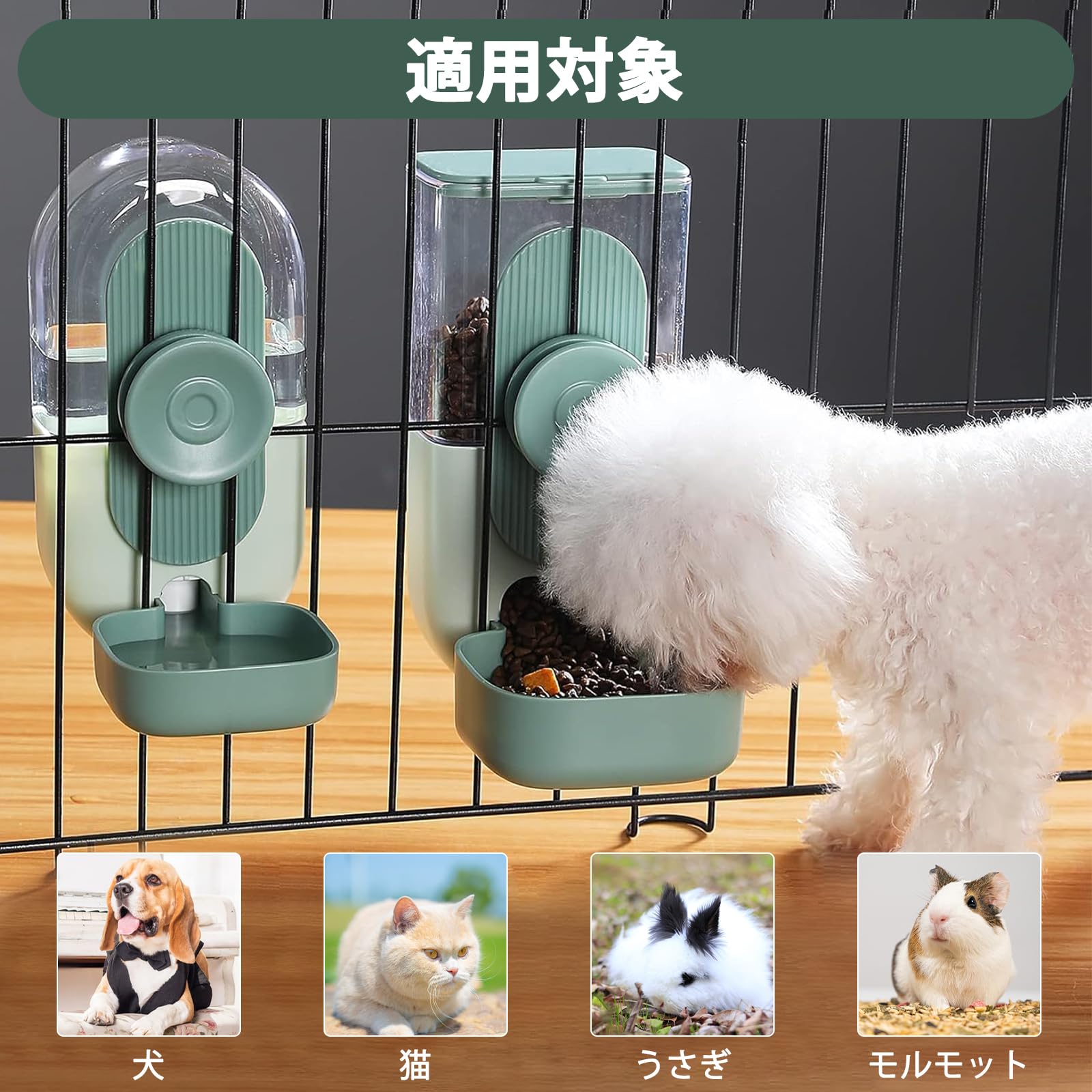 大容量ペット水飲み器: 自動餌やり機 犬は餌やり機と給水器の2個セットで、870 mlと800 mlの大容量で、頻繁に水やエサを補充する必要がなく、しっかり固定されるのでペットが容器を押したりしても水が溢れないで安定感抜群です。お出かけ時間の長い日や、毎回決まった時間にエサがあげられない方にお勧めです