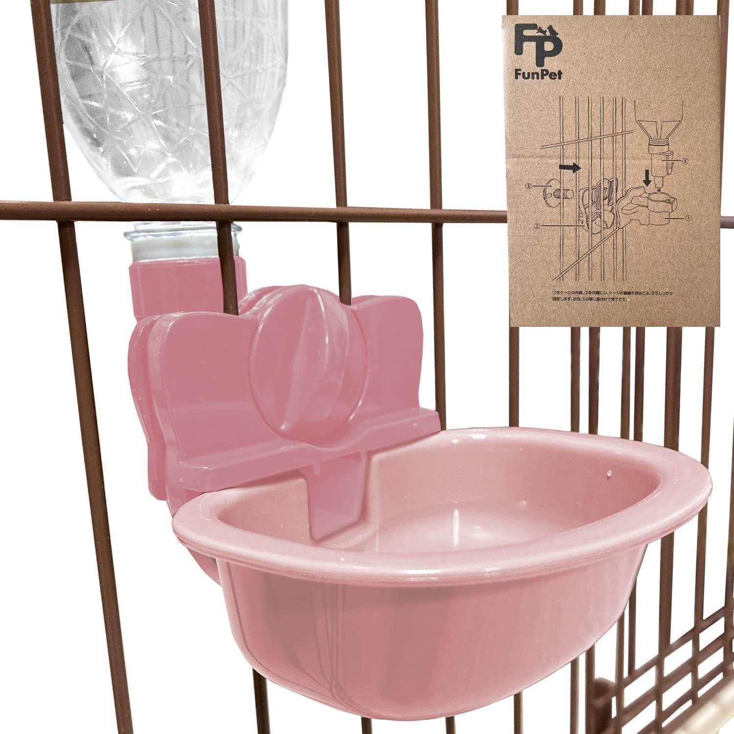 Fun Pet ペット 犬 猫 ケージ 取付型 水飲み 給水器 自動 給水 ペットボトル 使用可能 ウォーターボトル 食器 留守番 取付説明動画 (ベイビーピンク)