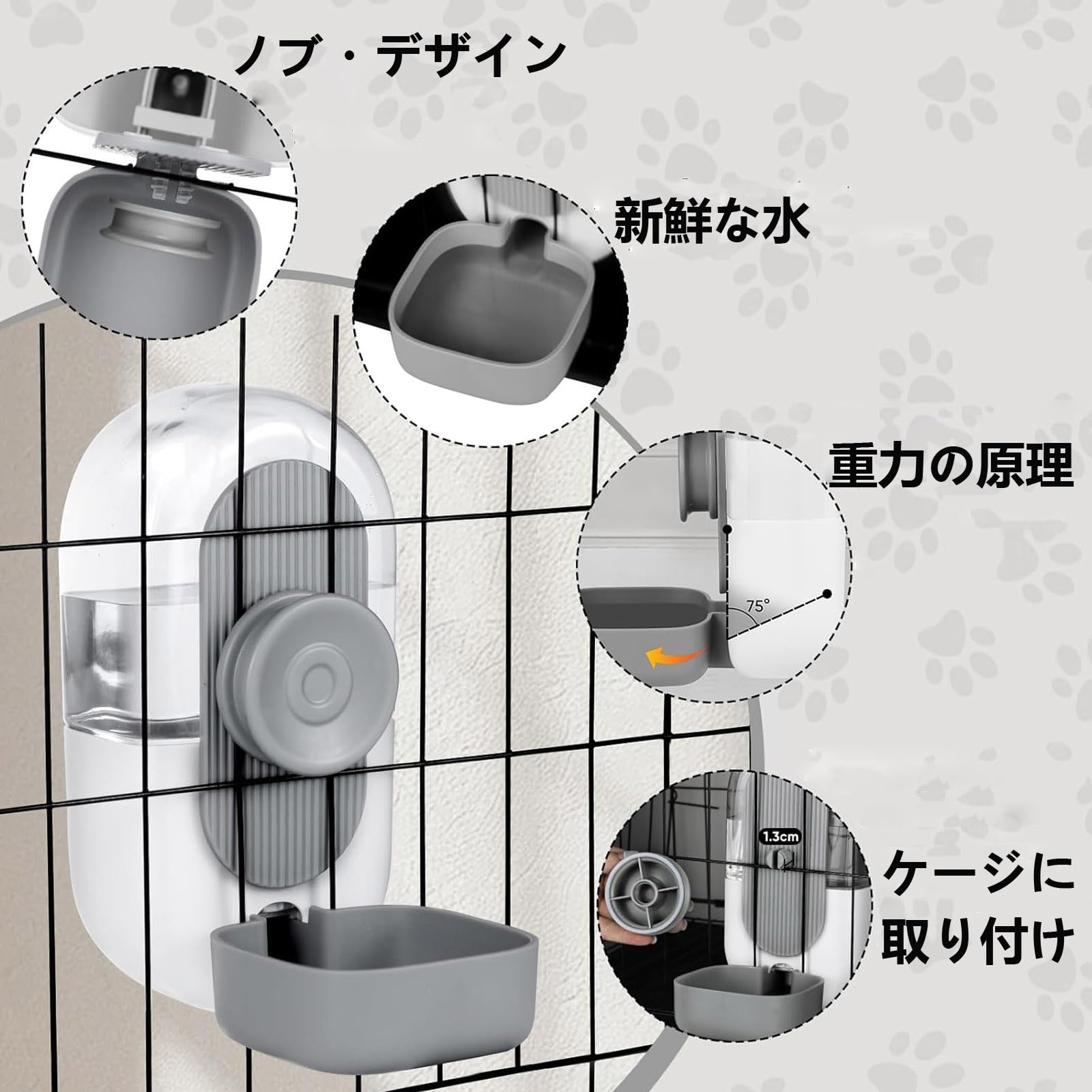 【在庫処分】犬 水飲み器 猫 水飲み器 自動給水器 猫 給水器 ケージ用犬 給水ボトル大容量0.8Lウサギ 水飲み 犬のみずのみ器こぼれない自動給水機 吊り下げ式ペット 水飲み器 ペットボトル ペット用品 取付け簡単 お留守番対応犬 給水器 ペットボトル(グレー自動給水器) | GIGATERA