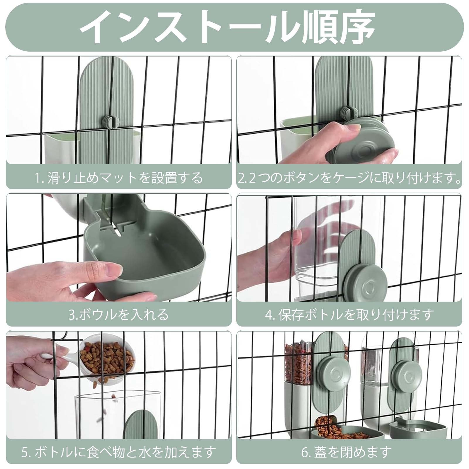 お手入れ簡単:プラスチックボトルは組み立てと分解が簡単で、簡単に吊るすことができます。ペットフィーダーの水飲み場セットが汚れている場合は、高温で洗浄してより清潔で衛生的になり、ペットの健康に有益です