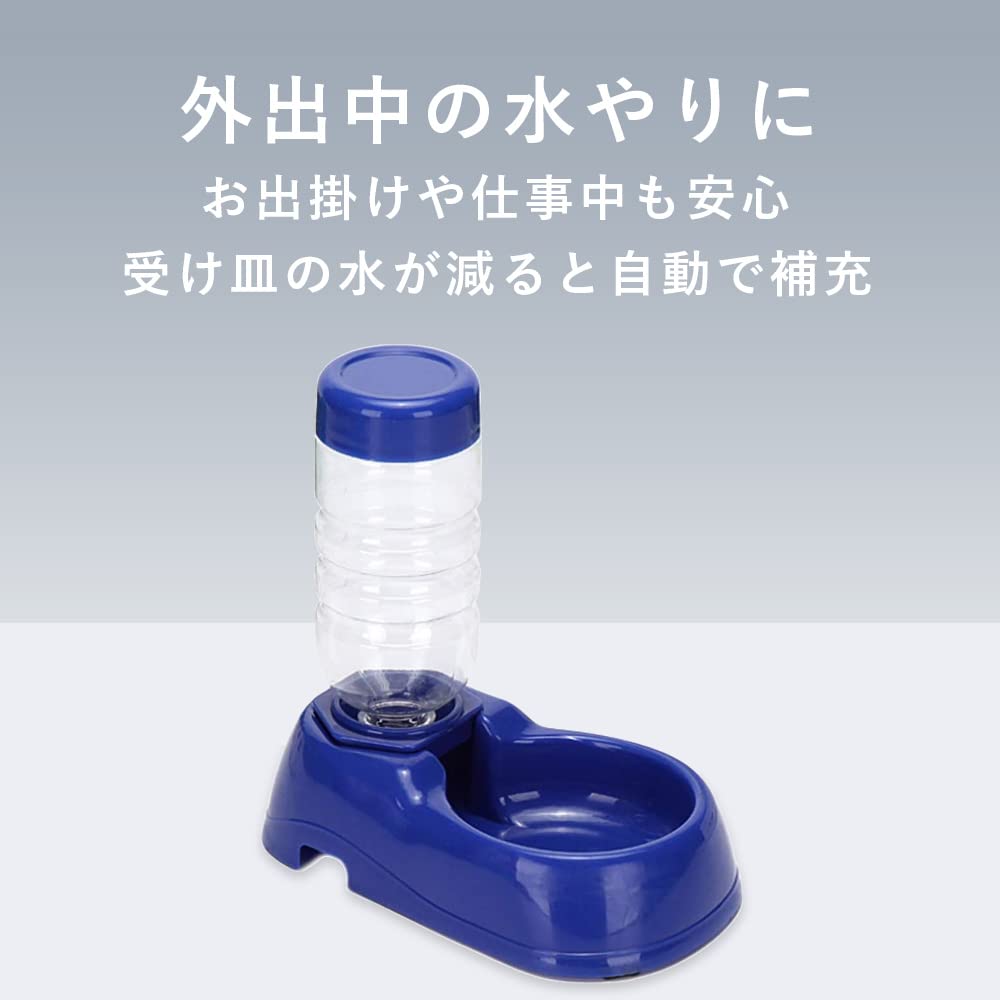 【外出中の水やりに】お出掛けや仕事中のペットの水やりにお使い頂ける自動給水機です。受け皿の水が減るとペットボトルから自動で補充されるため、水切れがおきにくくなっております。