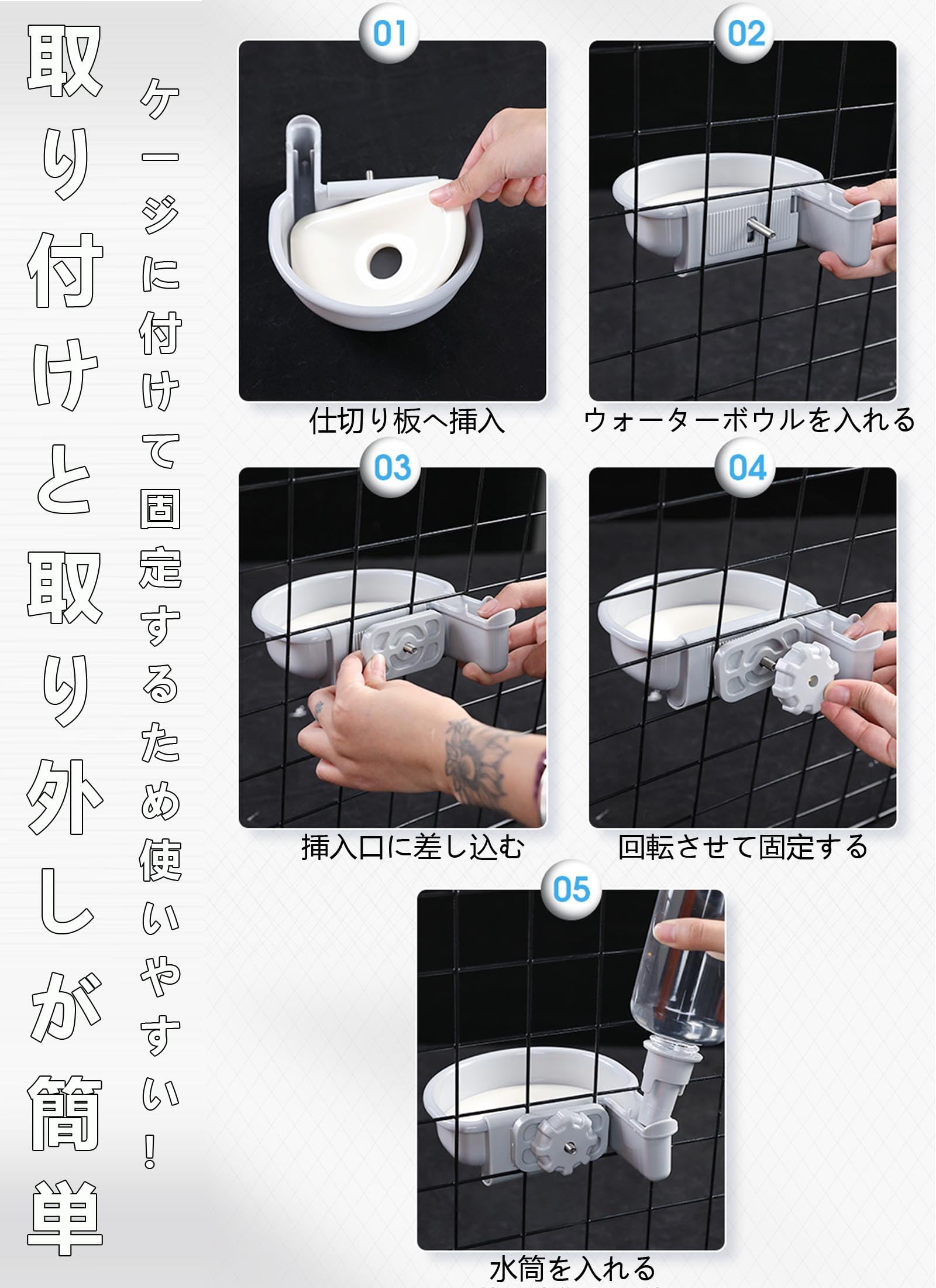 【取り付けは簡単で】ネジを回して猫のケージ取付けの給水器。幅広いゲージにも対応出来る仕様と安定感があります。転倒防止設計で、水がこぼれにくい。犬 給水器 ケージ用猫 給水器 ケージ用で、ペットが自由に水を飲むことができる。