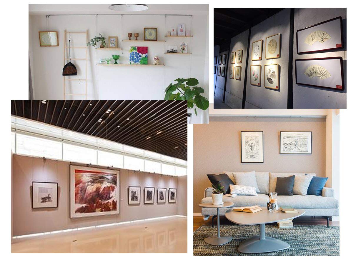 ★応用:ピクチャーレールワイヤーは絵画、写真、ポスターなど美術品などを吊るときに使用されます。