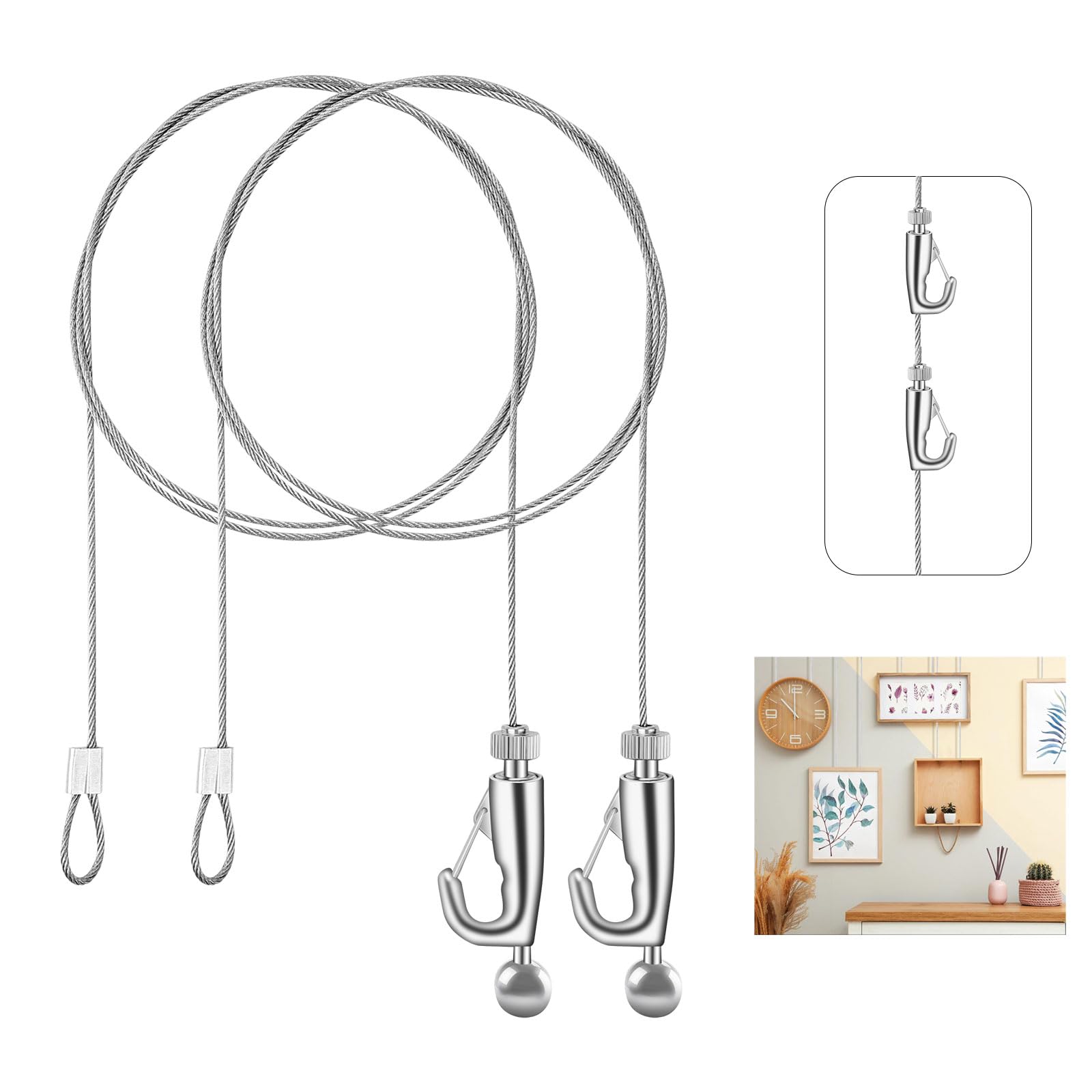 ピクチャーレール ワイヤー フック セット 自在金具付 2本セット ステンレス ワイヤーロープ 落下防止ワイヤー 吊り下げ 展示 DIY 絵画・額縁・壁掛けなど用 地震対策 (直径1mm--長さ0.5m--2本セット)