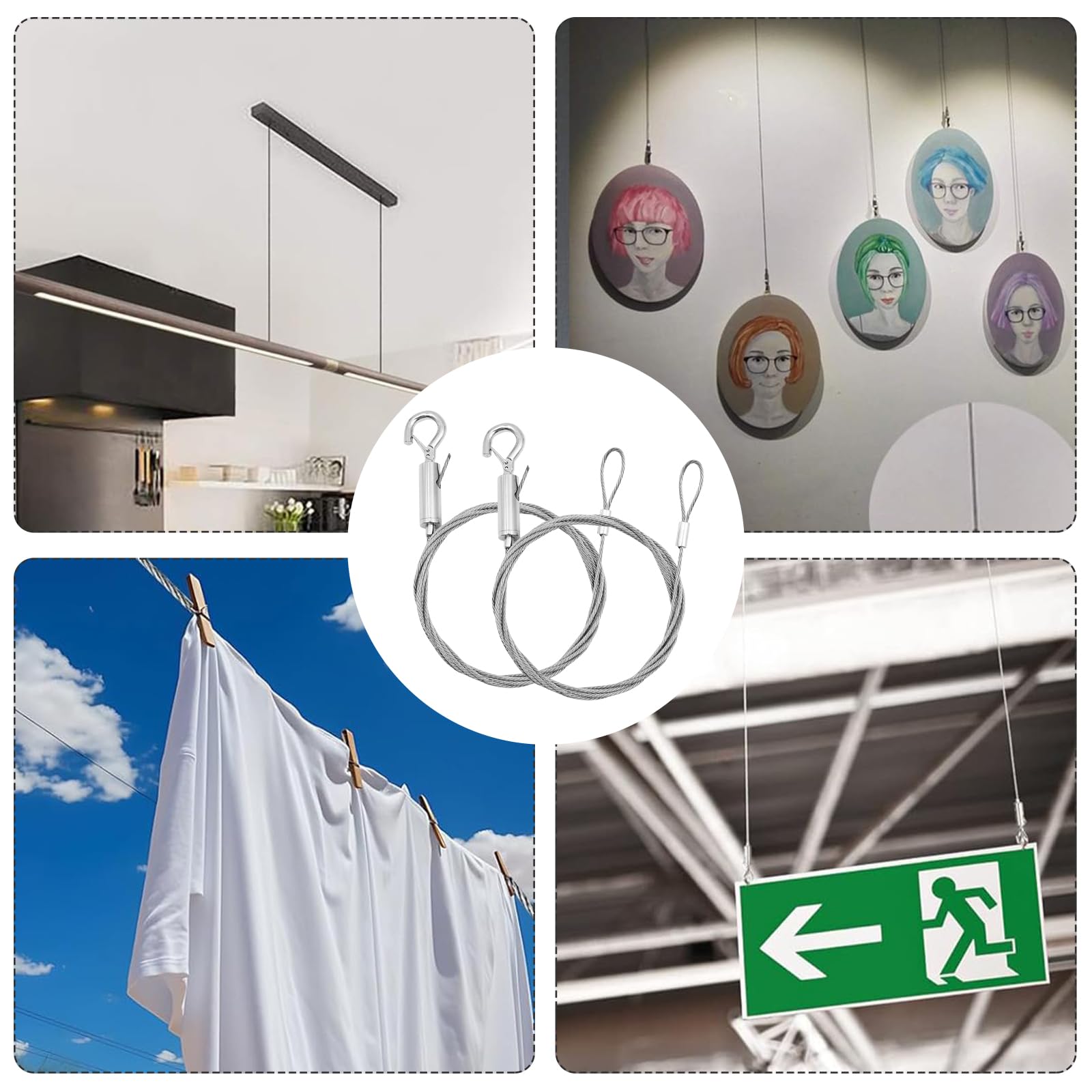 落下防止ワイヤー フック付きスリング (2本セット) ピクチャーレール ワイヤー 調節可能なステンレスワイヤー セキュリティワイヤー 直径1.5mm 長さ100cm 額縁 絵画 写真 時計 吊り下げ用