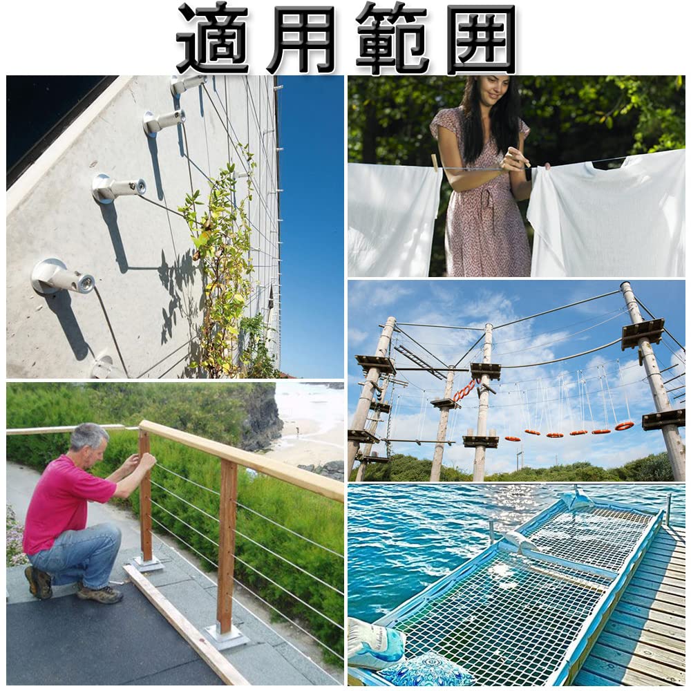 【高品質素材】安全ロープは304ステンレス鋼を使用しており,ステンレス製の特徴は、非常に錆びに強いことです!耐水性、耐久性、引張力などの特性があり。そのため、屋外の使用が多いワイヤーに最適です;雨水に晒されても、錆びにく!ステンレスワイヤー + スチールスプリングフック,表面はなめらかで,防水性、耐久性、軽量。