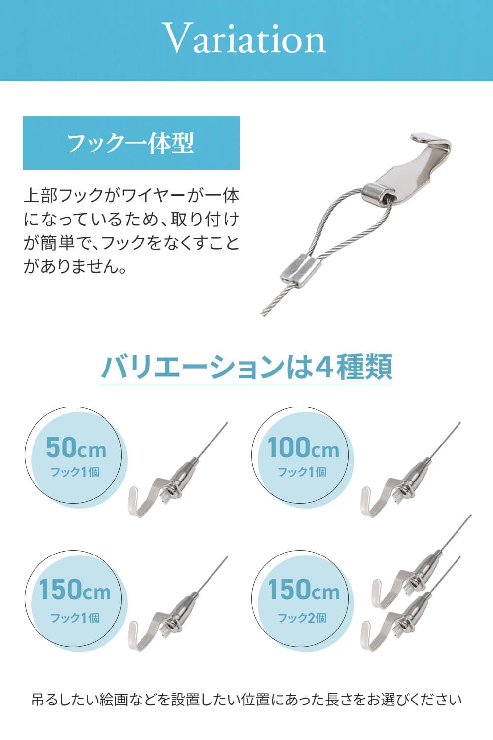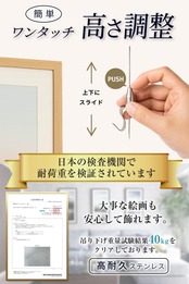 【高さ調節が自由】ワイヤーの長さを自在に調整でき、額の位置や展示高さを素早く変更できます(高さ調整機能)。
