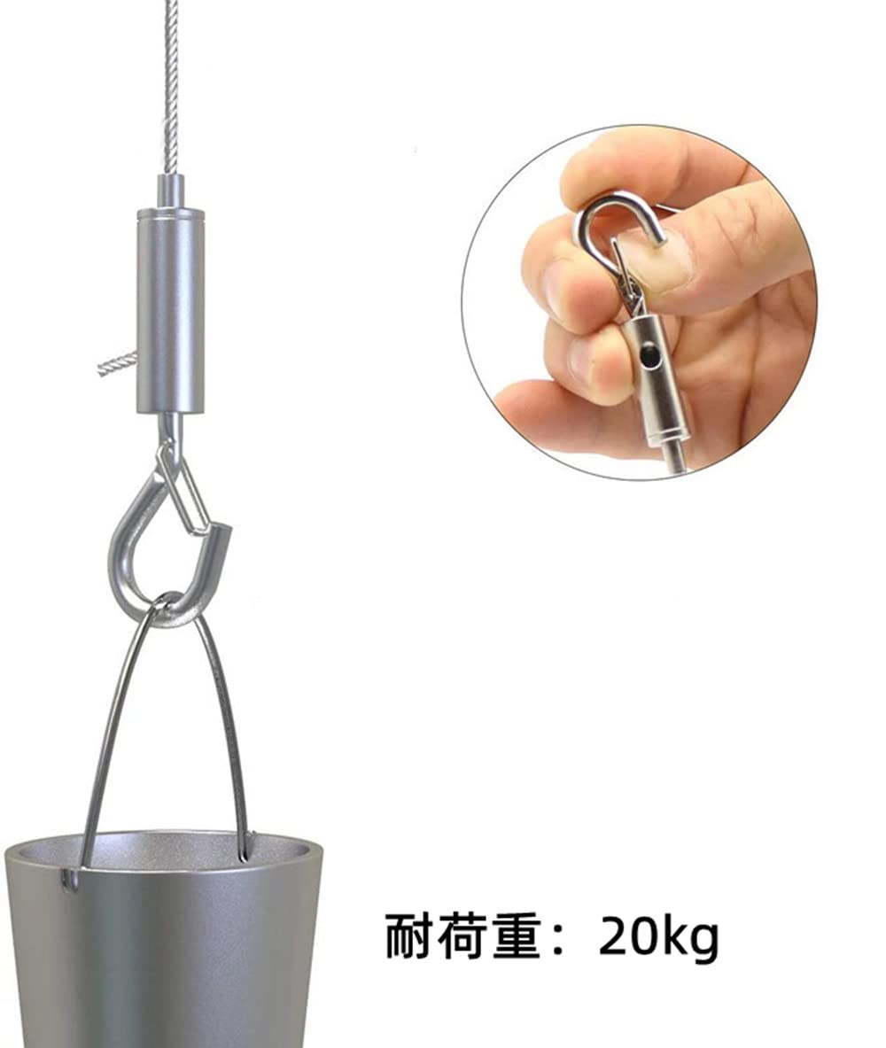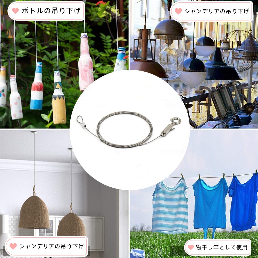 【高品質の素材】:ステンレス鋼材料でできて、このワイヤーロープは、長い時間使用のために耐久性があり、防錆と耐食性、防水性にも優れています。高い靭性があり、壊れにくく、20kgの重量に耐えることができます。