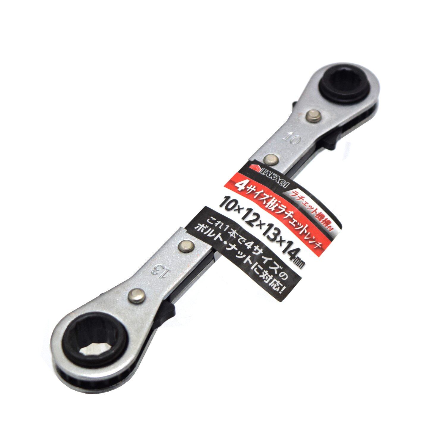 高儀(Takagi) GISUKE 板ラチェットレンチ ボルト・ナットの締めつけ、ゆるめ作業に 1本で4サイズのボルト・ナットに対応 ラチェット機構付 10×12×13×14mm 4907052214170
