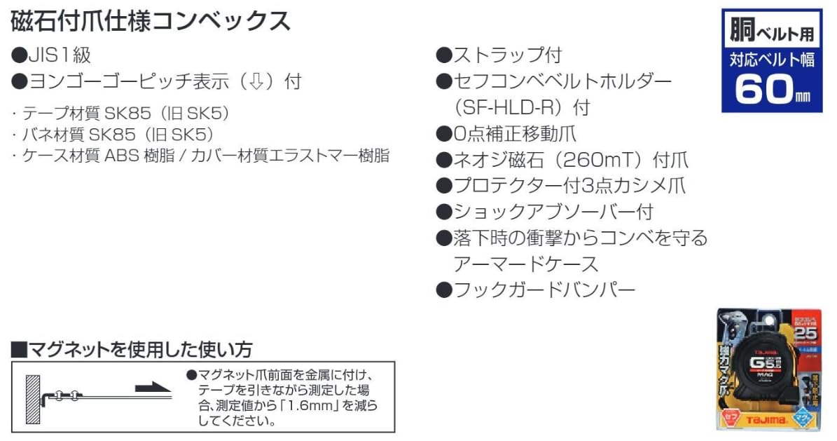 タジマ(Tajima) コンベックス 7.5m×25mm セフコンベGロックマグ爪25 SFGLM2575BL