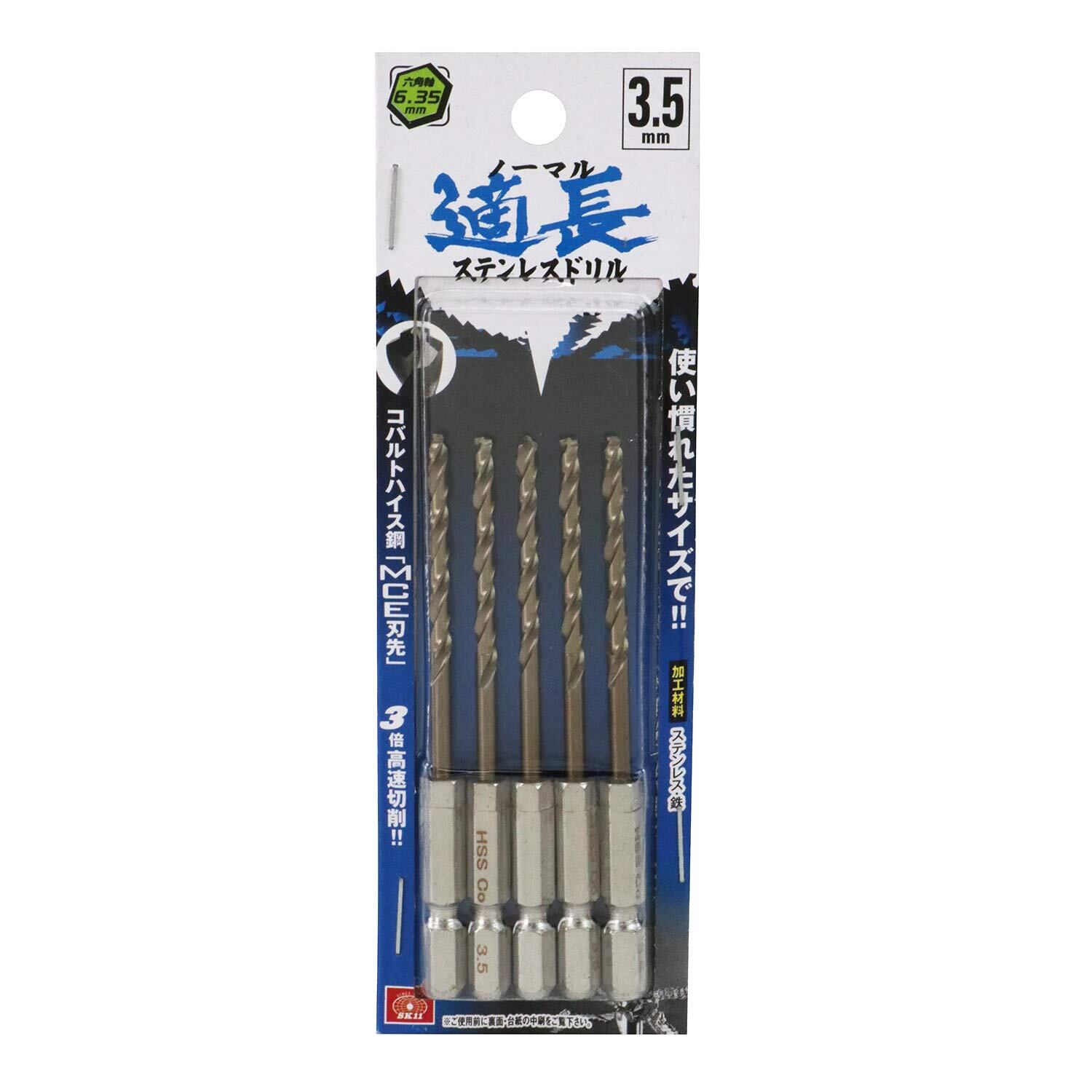 SK11(エスケー11) 六角軸Coステンドリル 普通 5本組 3.5mm