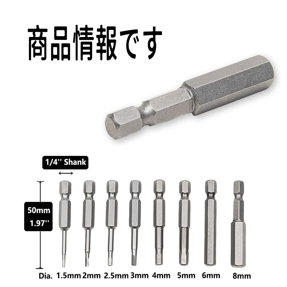六角レンチビット 8本セット インパクトドライバービット 精密ドライバー 六角? 6.35mm 磁気吸着 電動ドライバー ビット 1.5mmー8mm ドリル ビット工具 50mm長六角ビット