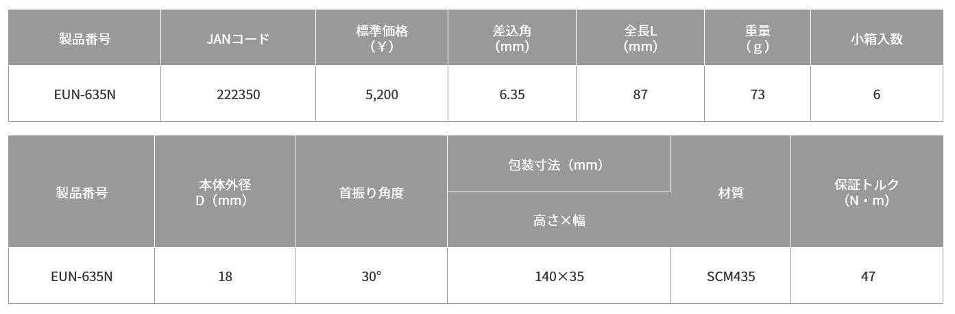 トップ (TOP) 電動ドリル用ユニバーサルジョイントスライドロック式 首振り角度30° EUN-635N 燕三条 日本製
