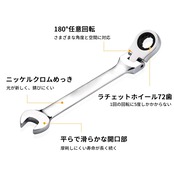 【商品仕様】8mmオープンラチェットレンチ×1、首振り角度:0〜180度、ギア数:72枚。