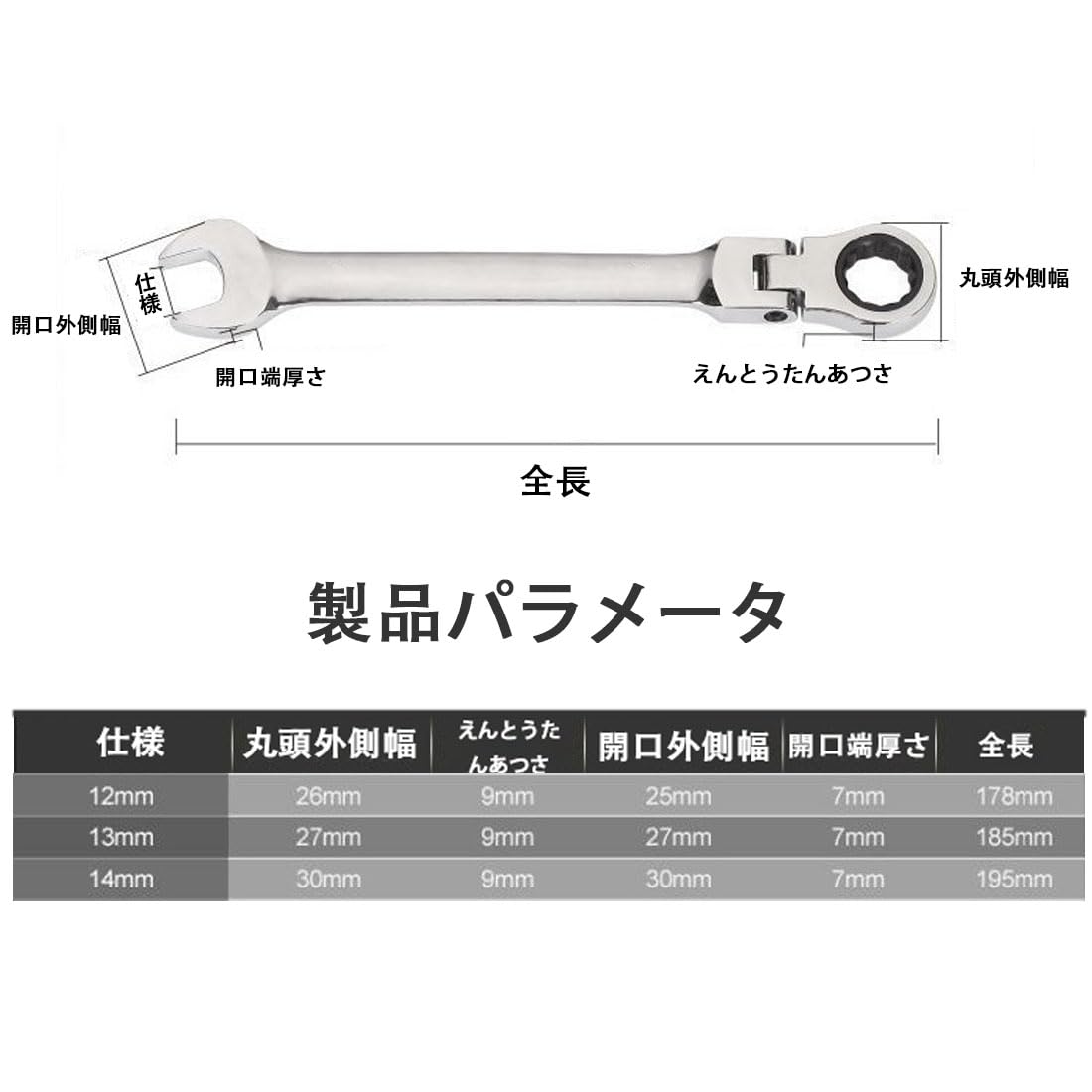 ラチェットレンチ コンビネーションレンチ 角度調整可能 72ギア 両用ヘッド 180°ターンヘッド設計 時間と労力を省く 一物両用 多機能用途 自動車修理 メンテナンス用(1個) (14mm)