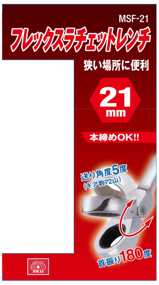 SK11(エスケー11) フレックスラチェットレンチ 21mm 首振り180度 MSF-21