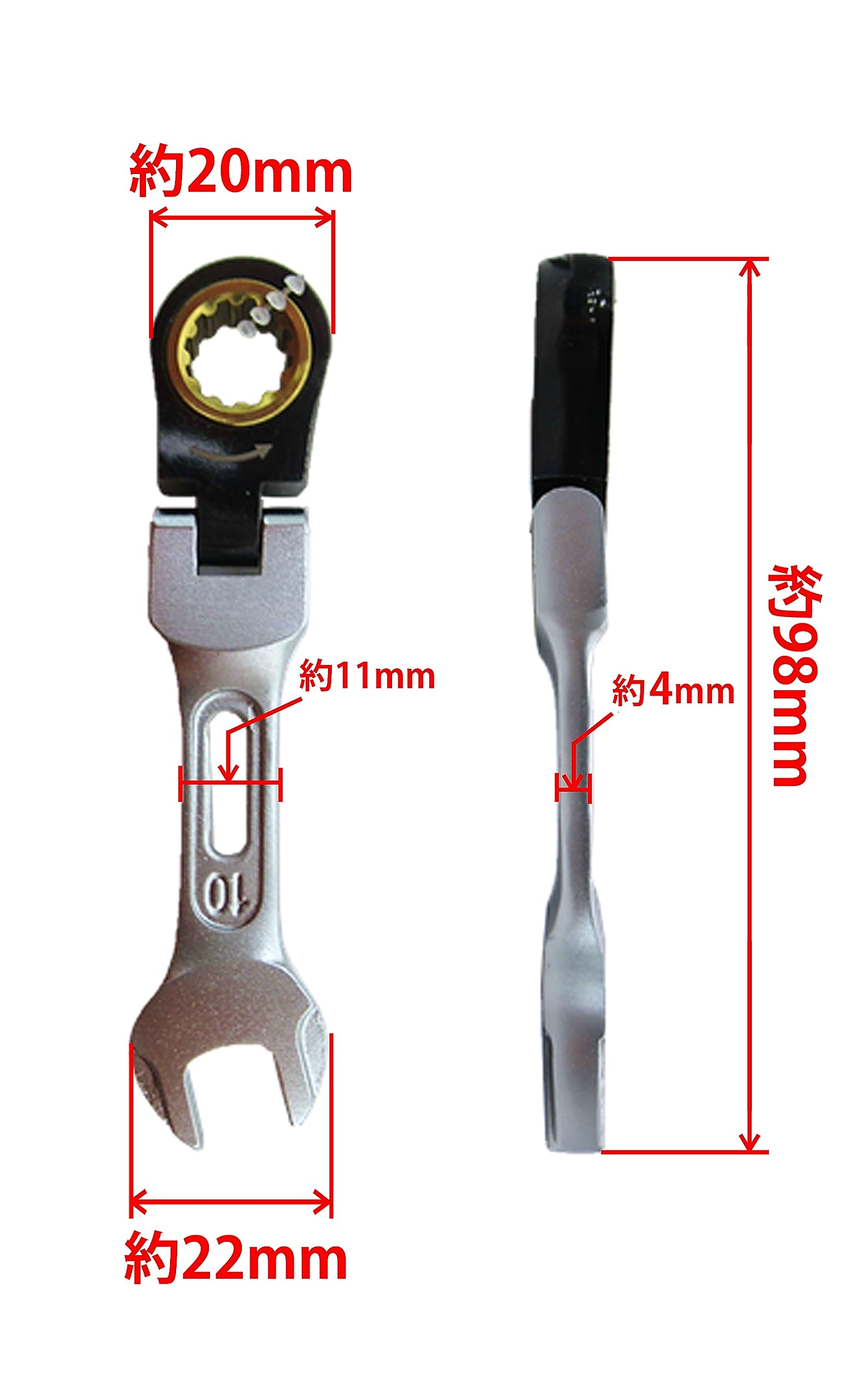 高儀(Takagi) マルチ ドライブ ギア レンチ フレキシブル スタビー 10mm ラチェットレンチ 首振り180° ギア数100 本締め 軽量 作業工具 ボルト ナット 締めつけ ゆるめ