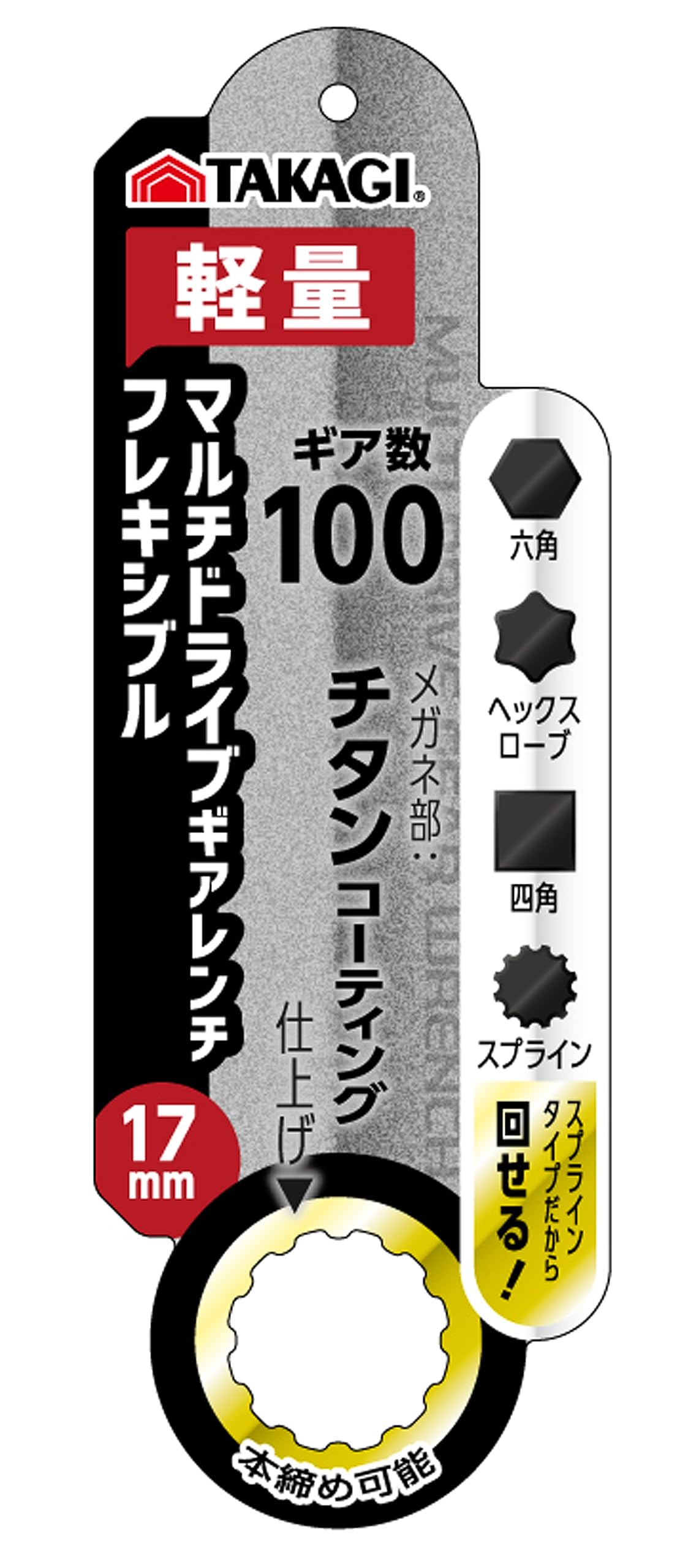高儀(Takagi) マルチ ドライブ ギア レンチ フレキシブル 17mm ラチェットレンチ 首振り180° ギア数100 本締め 軽量 作業工具 ボルト ナット 締めつけ ゆるめ
