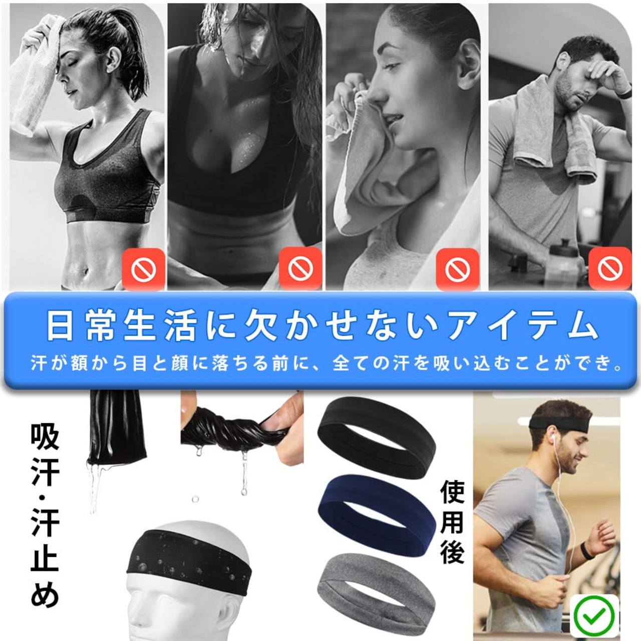 ヘッドバンド メンズ レディース ヘアバンド【汗止め・吸汗・視界を確保】 伸縮性あり 通気性あり 肌触り 柔らかい おしゃれ 薄型 軽量【洗顔・お家時間に スポーツ用 ランニング ダンス ヨガ サッカー 野球 男女兼用 オールシーズン 3枚セット