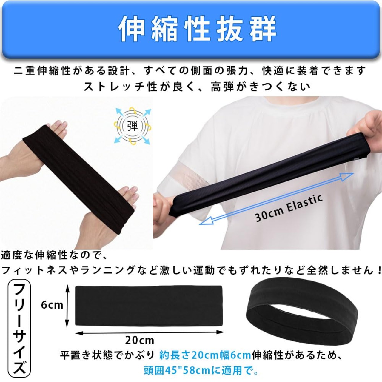 ■【快適な使用体験】最新昇級版、伸縮性抜群、吸汗速乾、通気性あり、抗菌防臭、UVカット、プロスポーツヘアバンド悩みを解決し。素材は薄く、一体感のあるデザインで、肌にやさしい。伸縮性、弾力性に引き締まりはありません。