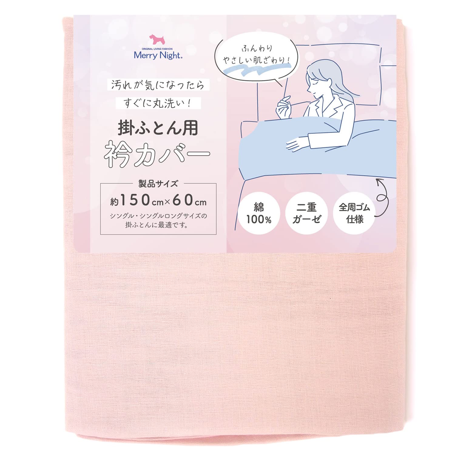 メリーナイト(Merry Night) 衿カバー 2重ガーゼ ピンク 約150×60cm (シングル・シングルロングサイズの掛け布団に最適)全周ゴム仕様 綿100% ふんわりやさしい肌ざわり 洗える EK1521-16