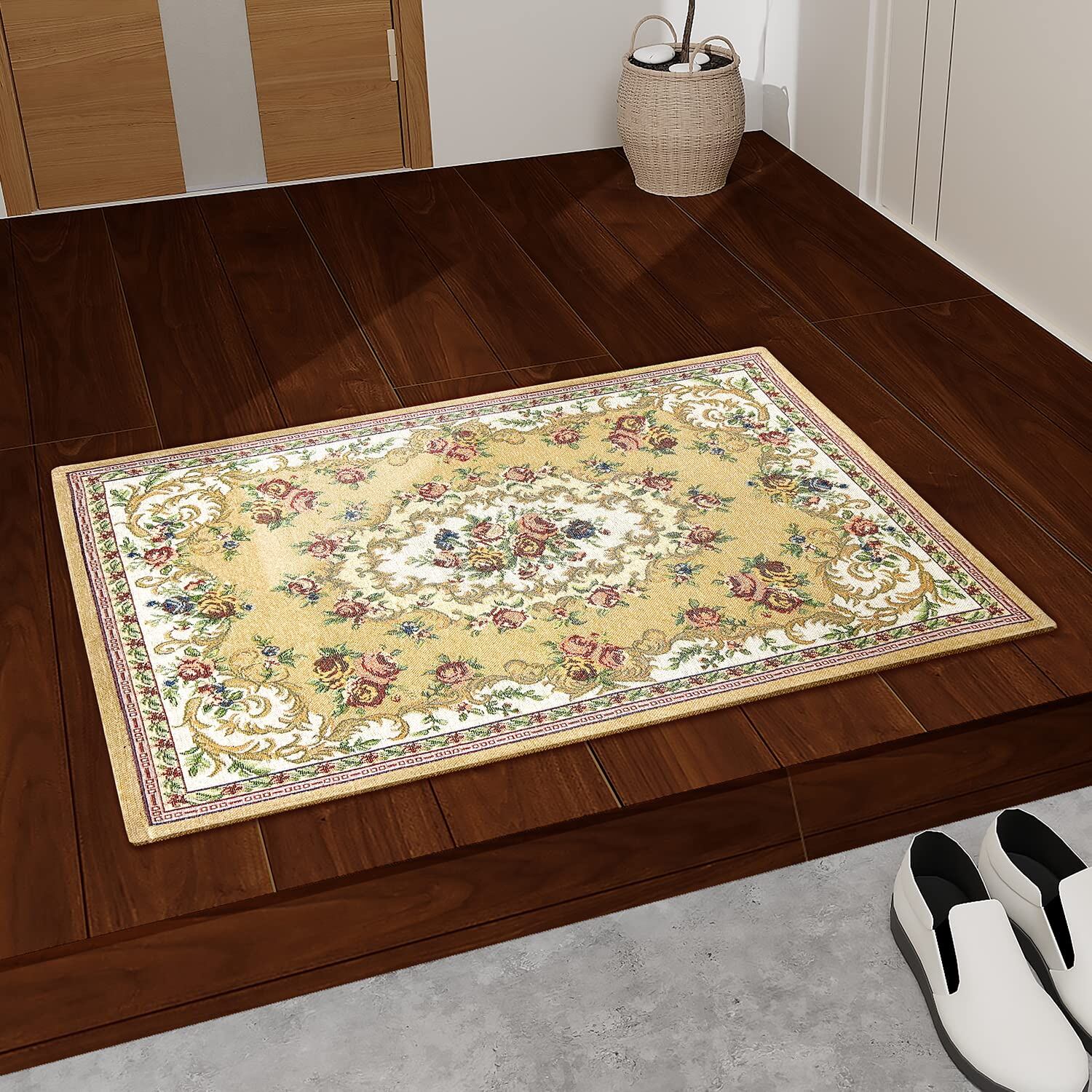 玄関マット 室内 おしゃれ 花柄 洗える 泥落とし ゴブラン織り 滑り止め 60×90 丸洗い 北欧 屋内 自宅 吸水速乾 抗菌防臭 耐磨耗性 床暖房対応 オールシーズン適用マット (ベージュ)