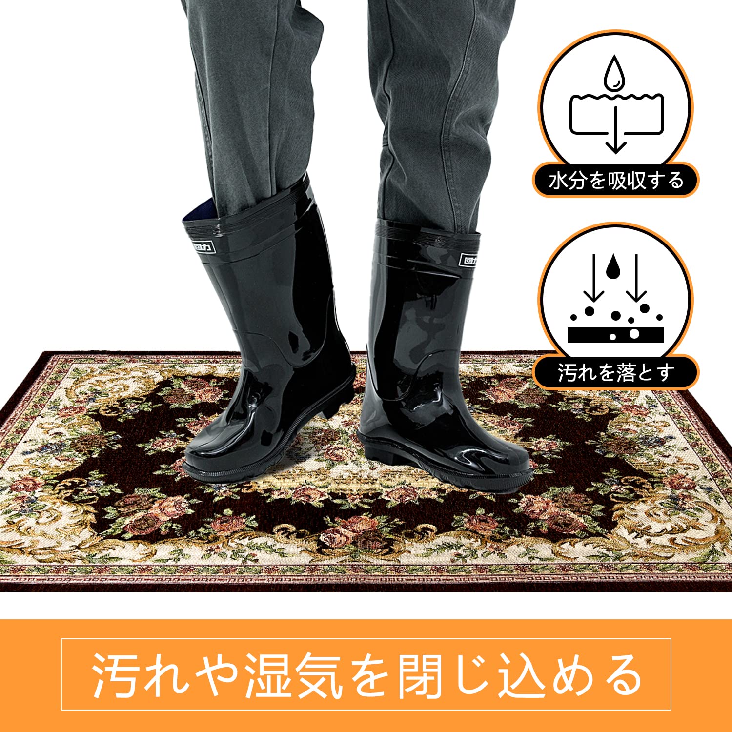 【製品仕様&様々な場合で大活躍】仕様:サイズ:60x90 cm ;二重織り 端部の厚み:10mm ;平織り平面の厚み:5mm ;表地:ポリエステル95% +コットン4% +その他1% 裏地:不織布(ポリエステル100%)様々なところに適しています。 玄関マットだけでなく、ドアマット、階段マット、洗面所マット、キッチンマットなどの室内マットに使用できます。