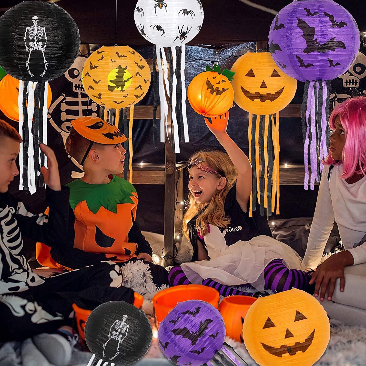 ハロウィン提灯:カボチャ、コウモリなど可愛いハロウィン紙ちょうちん10個セットです。