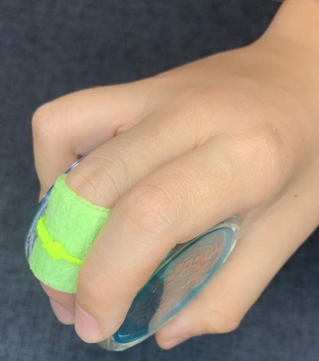 このテープは柔らかく伸縮性にも優れており指の曲げ伸ばしを妨げません。実際に使用するときは指を2周するくらいの長さで切って使うとよいでしょう