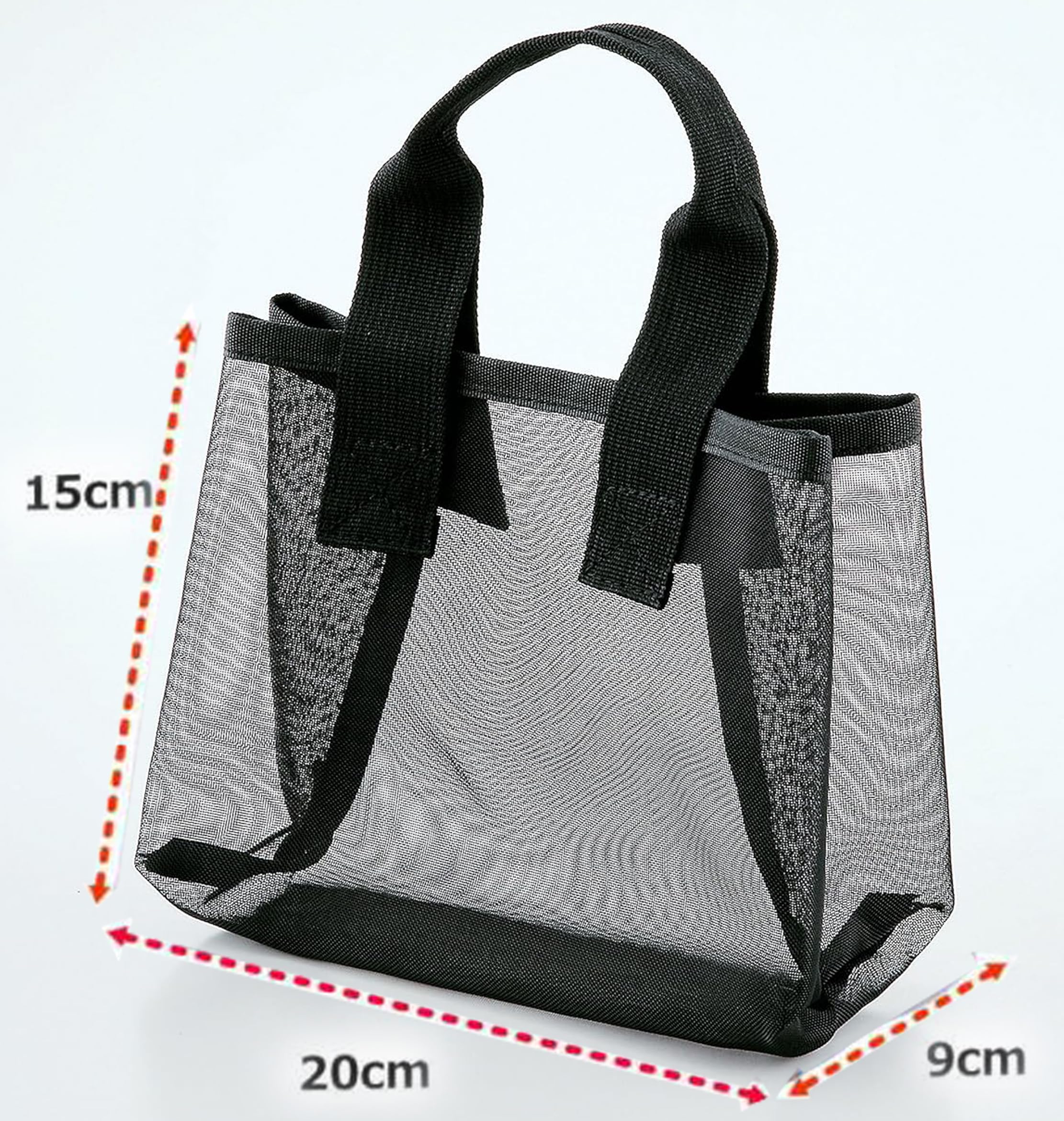 サイズ:クリアバッグ/約165(全高200)×230×90㎜ メッシュバッグ/約150×200×90㎜、 素材:クリアバッグ/塩化ビニル メッシュバッグ/ナイロン、ポリエステル、ポリプロピレン