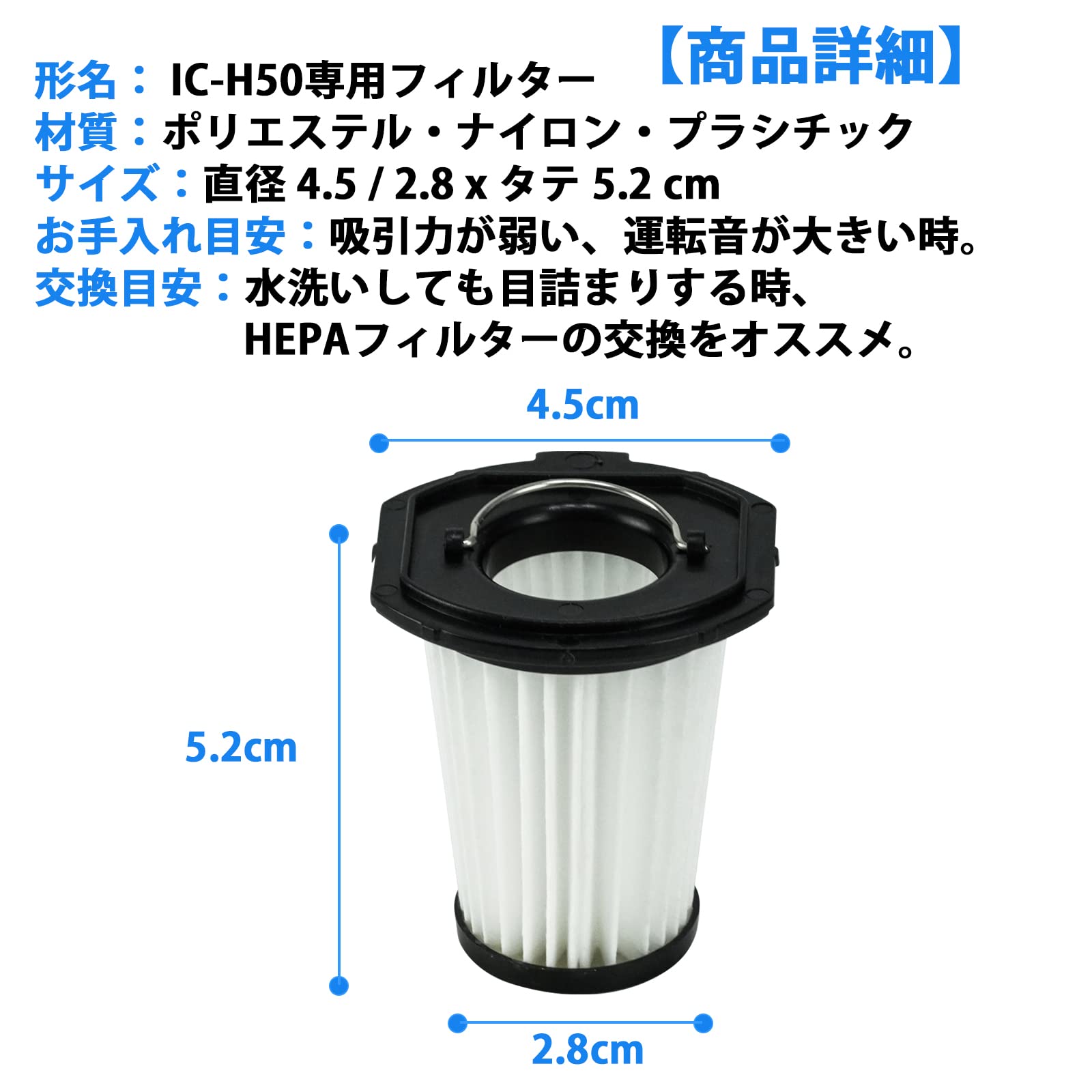 BBT IC-H50-B フィルター IC-H50 HEPAフィルター IC-H50-HA ハンディクリーナー IC-H50-CW 掃除機 互換 部品 2個入り