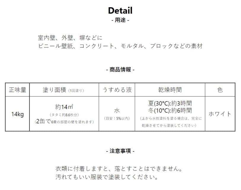 【塗り面積(1回塗り)】約14㎡(タタミ約8.6枚分)