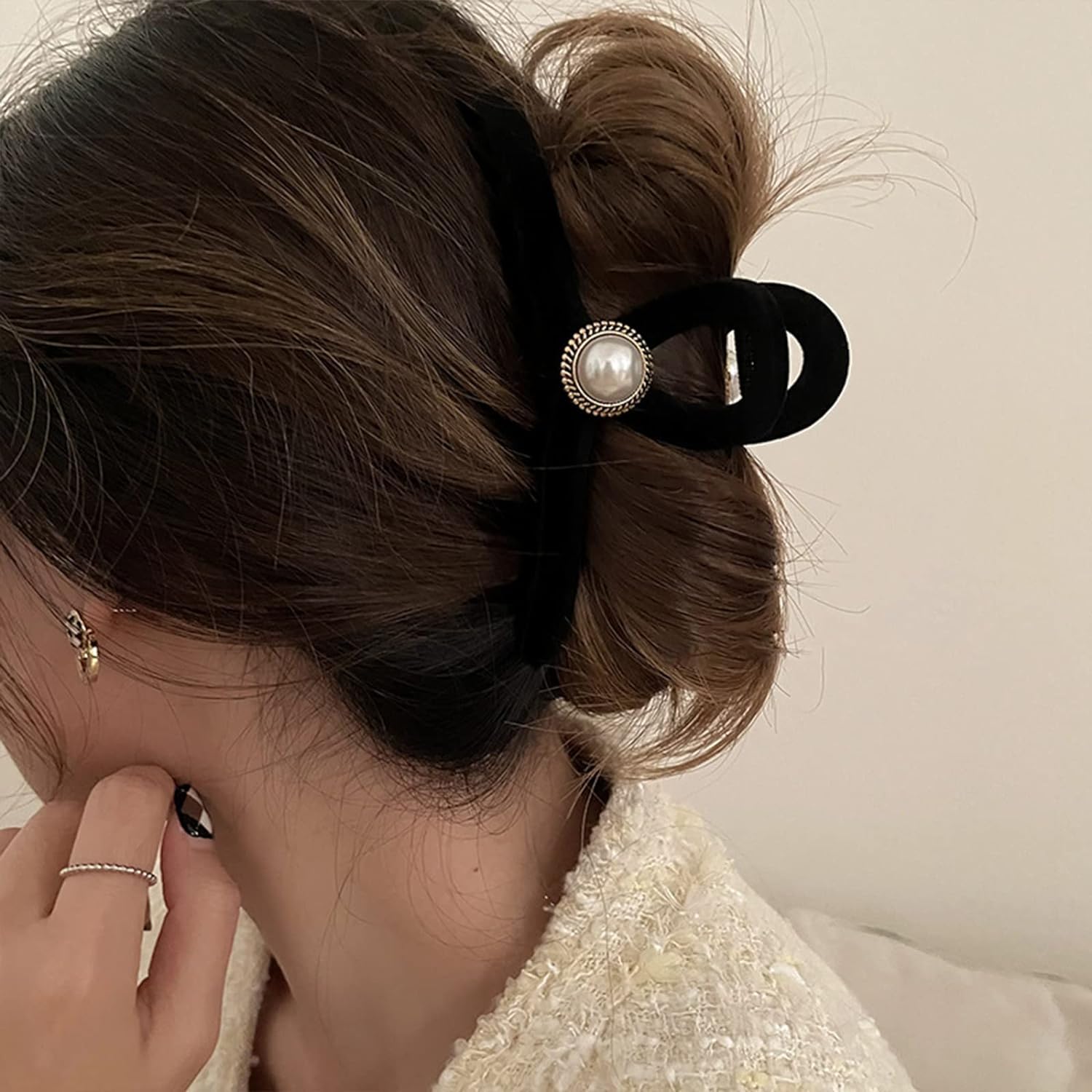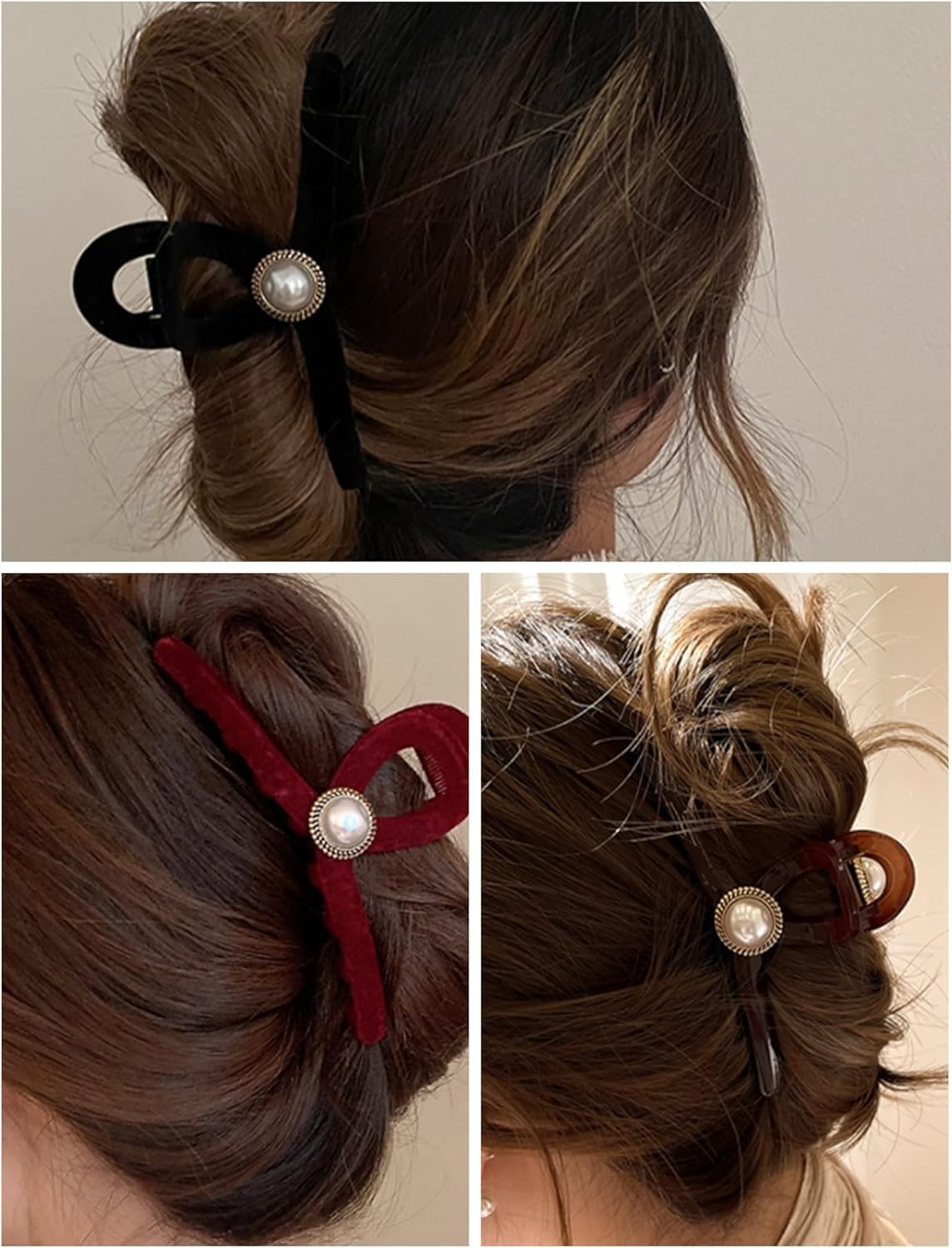 happykau ヘアクリップ大きめしっかりとまる 髪留め バンスクリップ ヘアくりっぷ ヘアアクセサリー大人 韓国 可愛い おしゃれ人気 パールのヘアクリップ 濃密な髪も使用可能 ヘアキャッチおしゃれ 贈り物 (ブラックパール)
