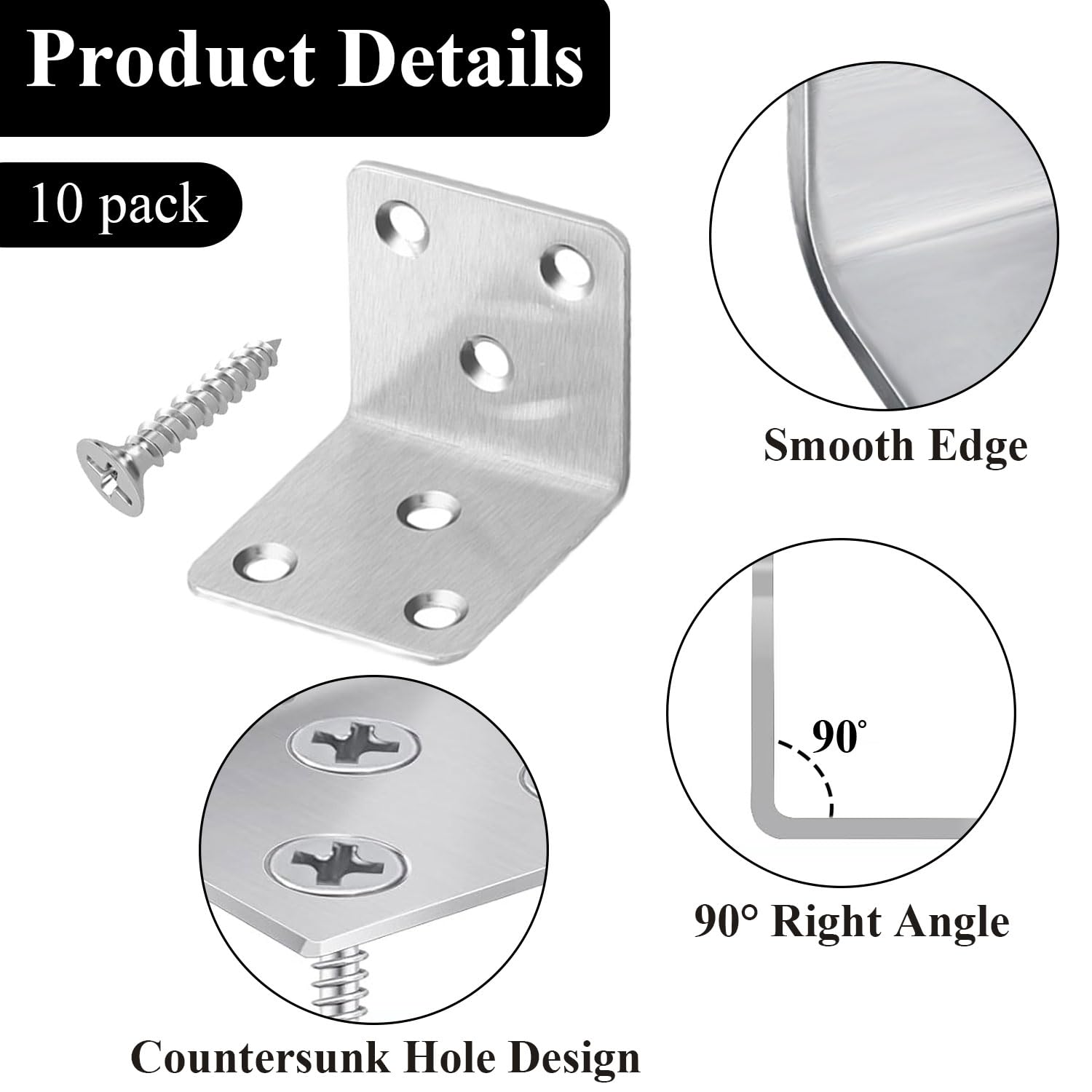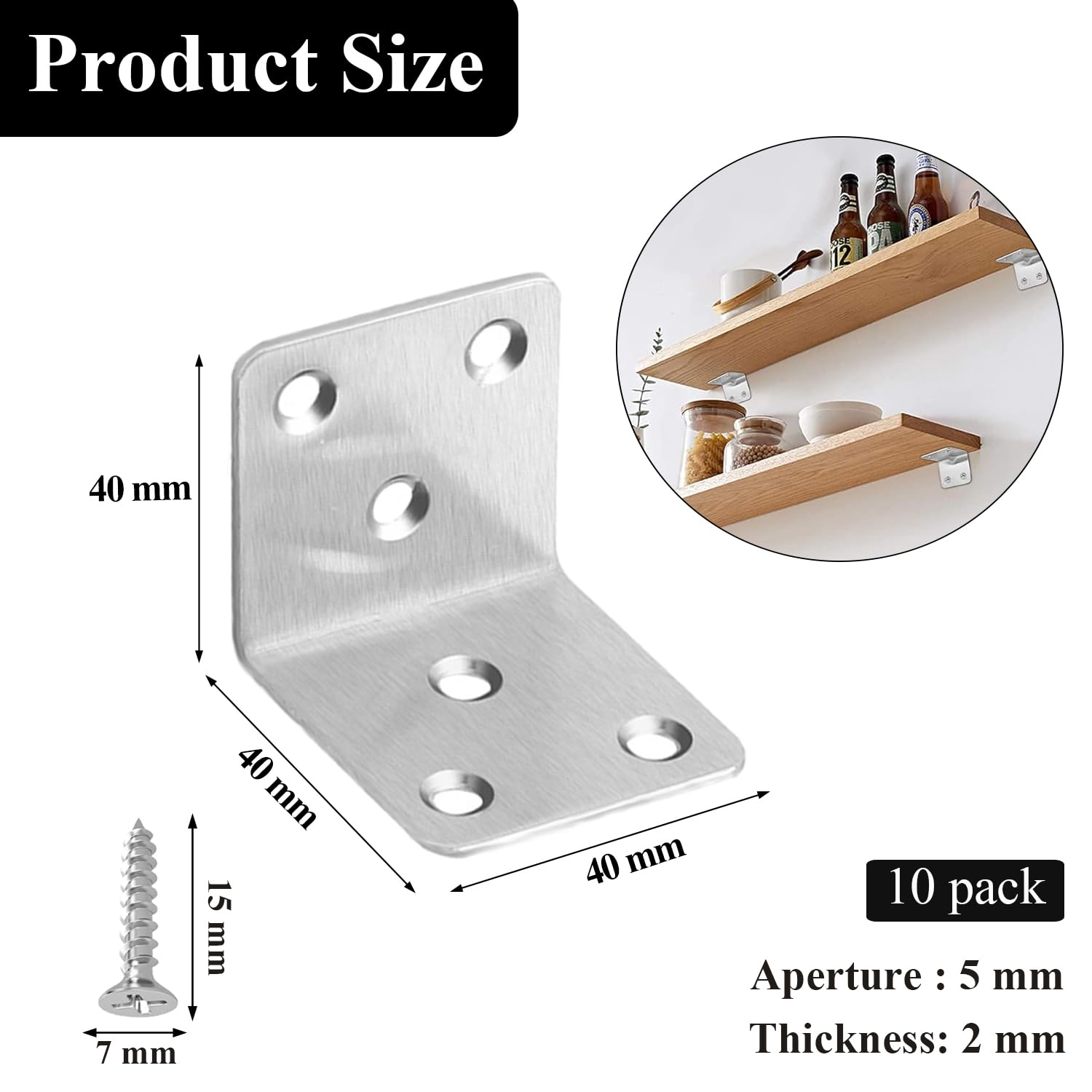 10個 L字固定金具 角かっこ コーナーブレース 木製家具棚L字型直角鉄製ブラケット ステンレス製 家具ブロンズトーン用 ステンレス板 連結金具 家具固定用 棚受け金具 テーブル 引き出し 椅子 コーナーブレース ジョイント金具 (40X40mm) ネジ付き