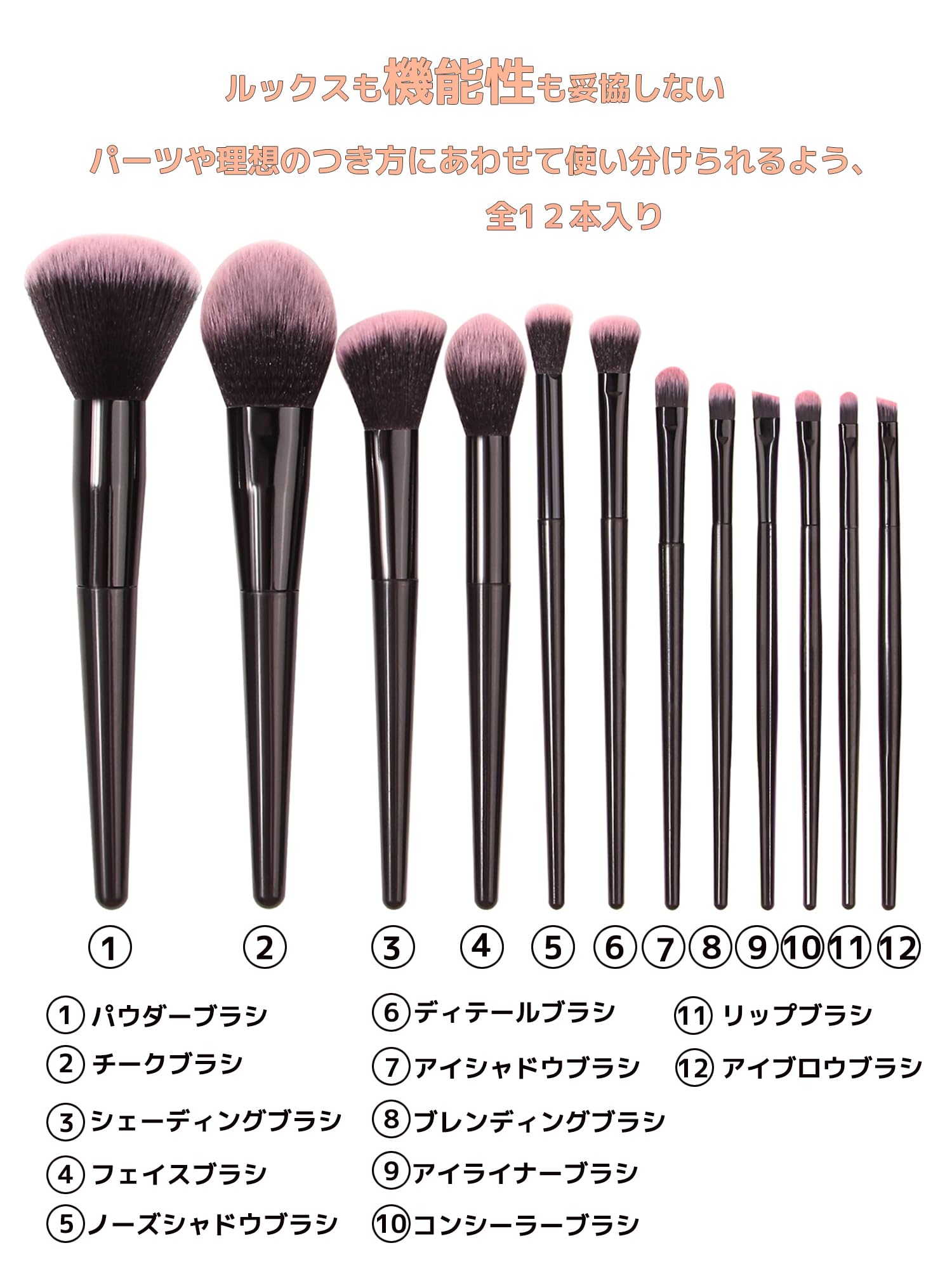 【メイクブラシセット】12本のメイクブラシセットには、パウダーブラシ、アイシャドウブラシ、コンシーラーブラシ、チークブラシ、眉ブラシ、リップブラシなどが含まれています、この一セットで十分、日常メイクからフルメイクまで、お化粧に必要な化粧筆をほぼ全てお入れしました。
