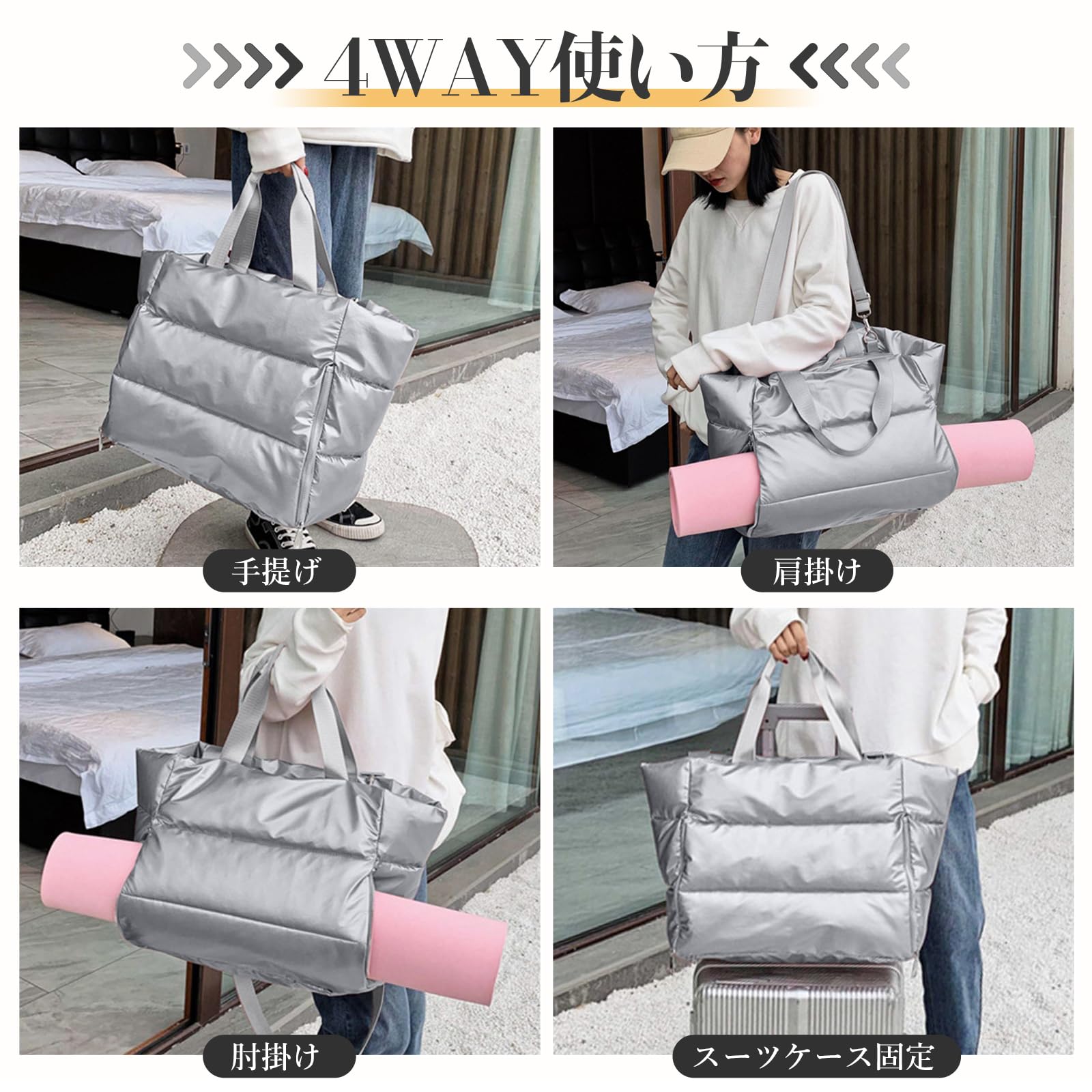 【特価在庫】Ganve ボストンバッグ レディース 3way 軽量 キャリーオンバッグ 35L 大容量 防水 乾湿分離 機内持込可能 ショルダーバッグ トートバッグ アウトドア スポーツ ジム 水泳 旅行 修学 通勤 1泊2日 2泊3日 可愛い 人気 無地 (C-銀) | GIGATERA