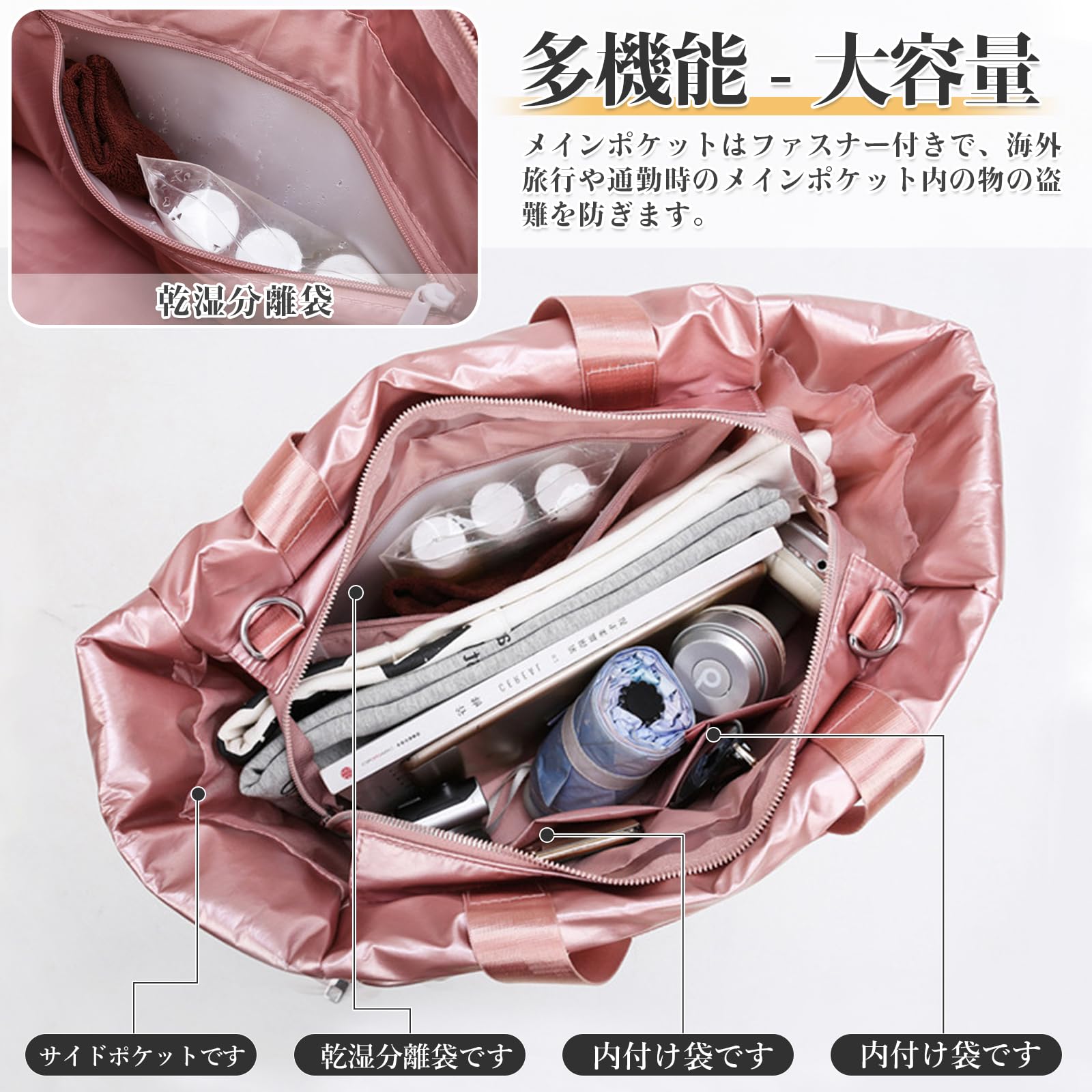 Ganve ボストンバッグ レディース 3way 軽量 キャリーオンバッグ 35L 大容量 防水 乾湿分離 機内持込可能 ショルダーバッグ トートバッグ アウトドア スポーツ ジム 水泳 旅行 修学 通勤 1泊2日 2泊3日 可愛い 人気 無地 (C-銀)