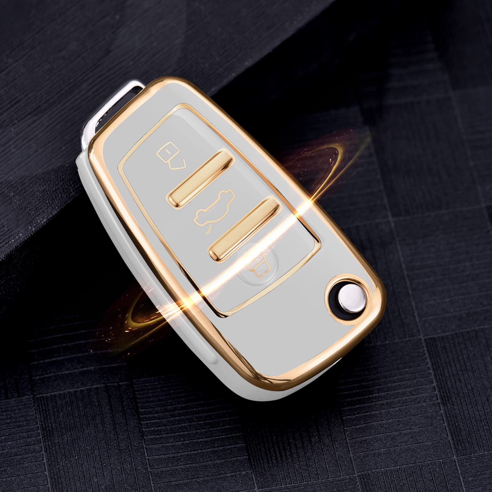 OATSBASF アウディ キーケース AUDI 専用 スマートキーケース 高級 TPU 汚れ 滑り傷 防止 A1 A3 Q2 Q3 R8 S3 S6 TT 専用 スタイリッシュ スマートリモコン キーカバー アウディ キーホルダー(金縁ホワイト)