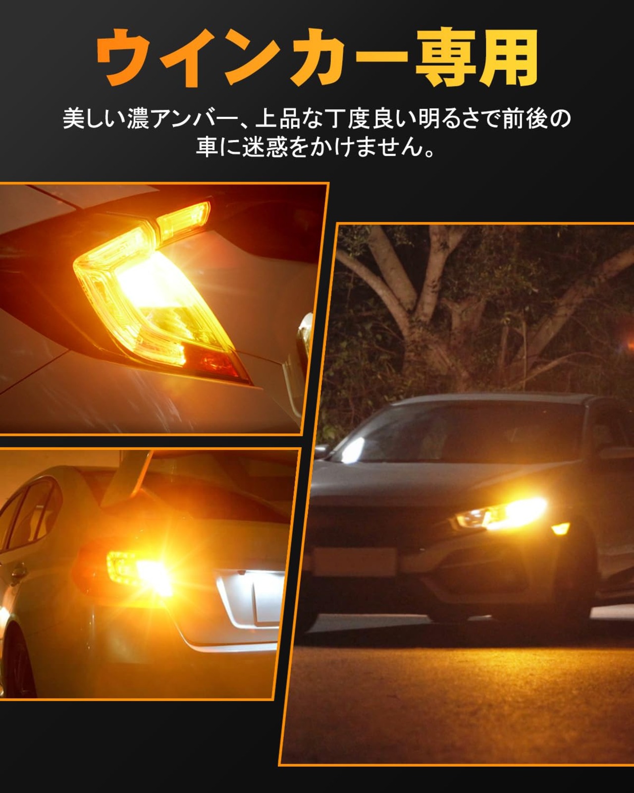 【高輝度】OXILAM T20 LEDバルブは、純正アンバー色で、ヘッドライトによく採用した1860 LEDチップを4連搭載。光がワイドに広がり路面までしっかり照射するため、優れ日中でもウインカーランプをしっかりと視認できます。安全性が大幅に向上します。