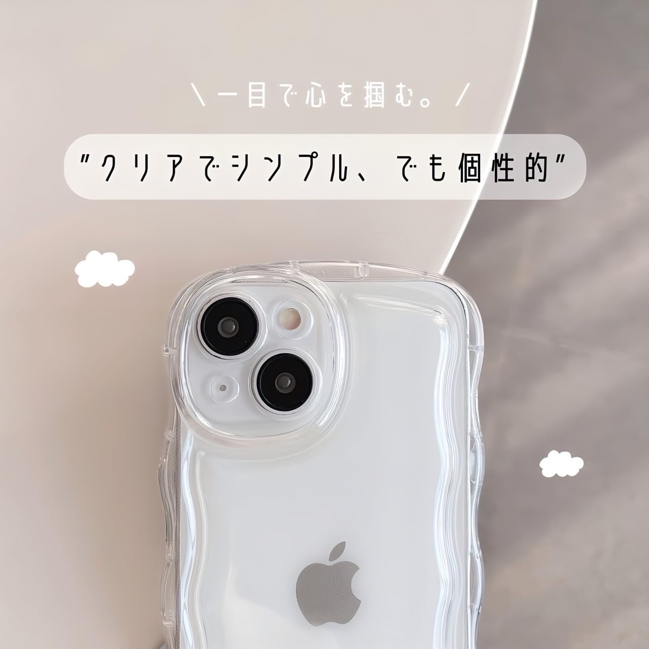 saymi's クリア ウェーブ おしゃれ 韓国 iPhone12 ケース アクスタ収納 推し活にぴったり 手にフィット 透明 可愛い シンプル (iPhone12)
