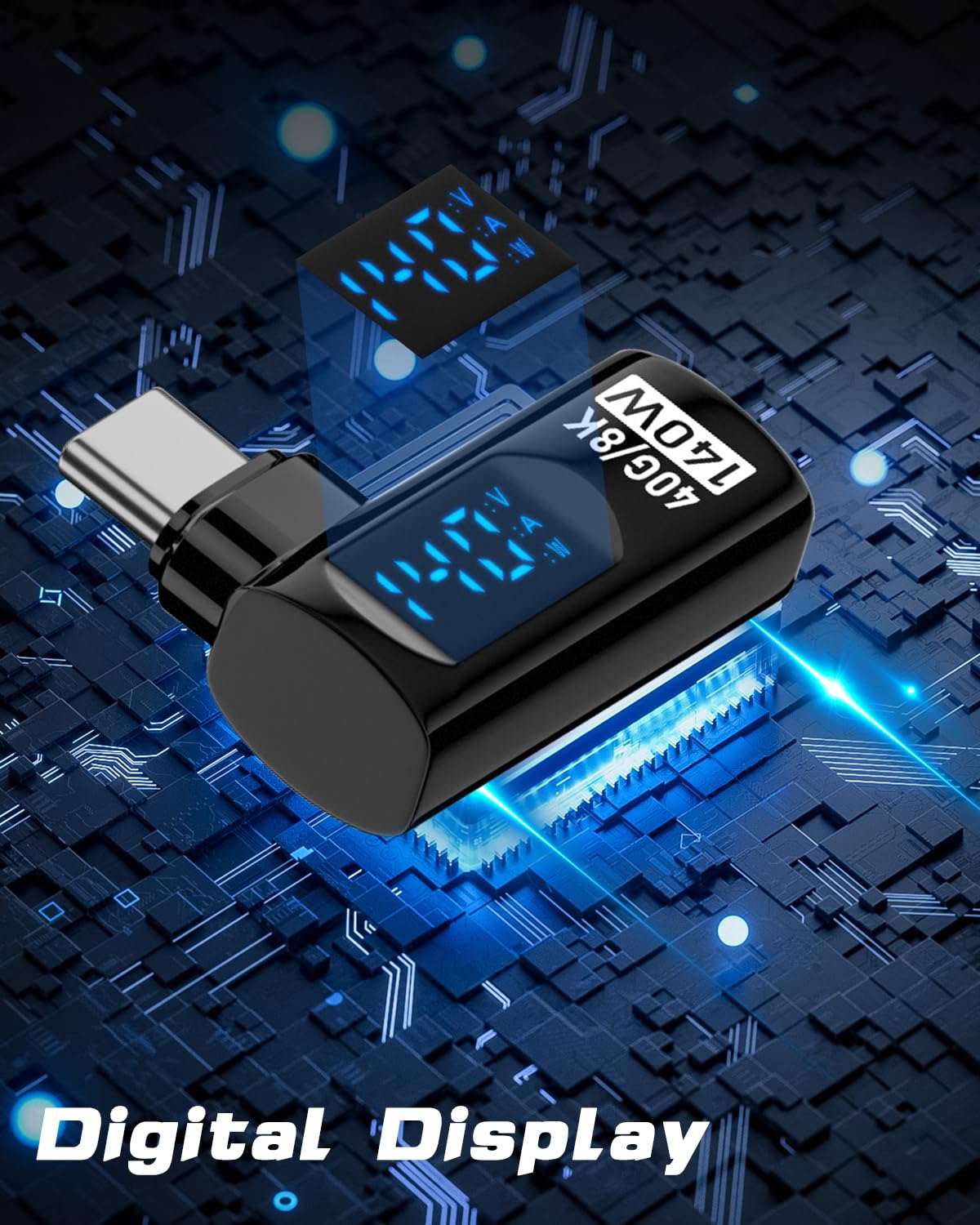 【LEDデジタルディスプレイ表示】L字 USB C 延長アダプタは充電電圧、電流、電力をリアルタイムで表示できるV/A/WディスプレイLEDスクリーンを搭載したUSB C延長アダプタです。視覚的なデザインで、充電速度をリアルタイムで知ることができ、デバイスの状態を監視することができます。