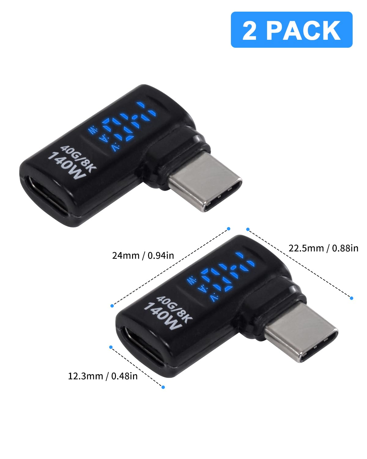 Poyiccot USB C 延長アダプタLED 出力スクリーン表示、 L字 USB-C 変換アダプタ40Gbps、L 型 USB C 延長アダプタ140W & 8K@60Hz映像出力USB タイプc 延長アダプタ対応雷電 3/4 対応 MacBook Air/Pro/携帯電話用、2個