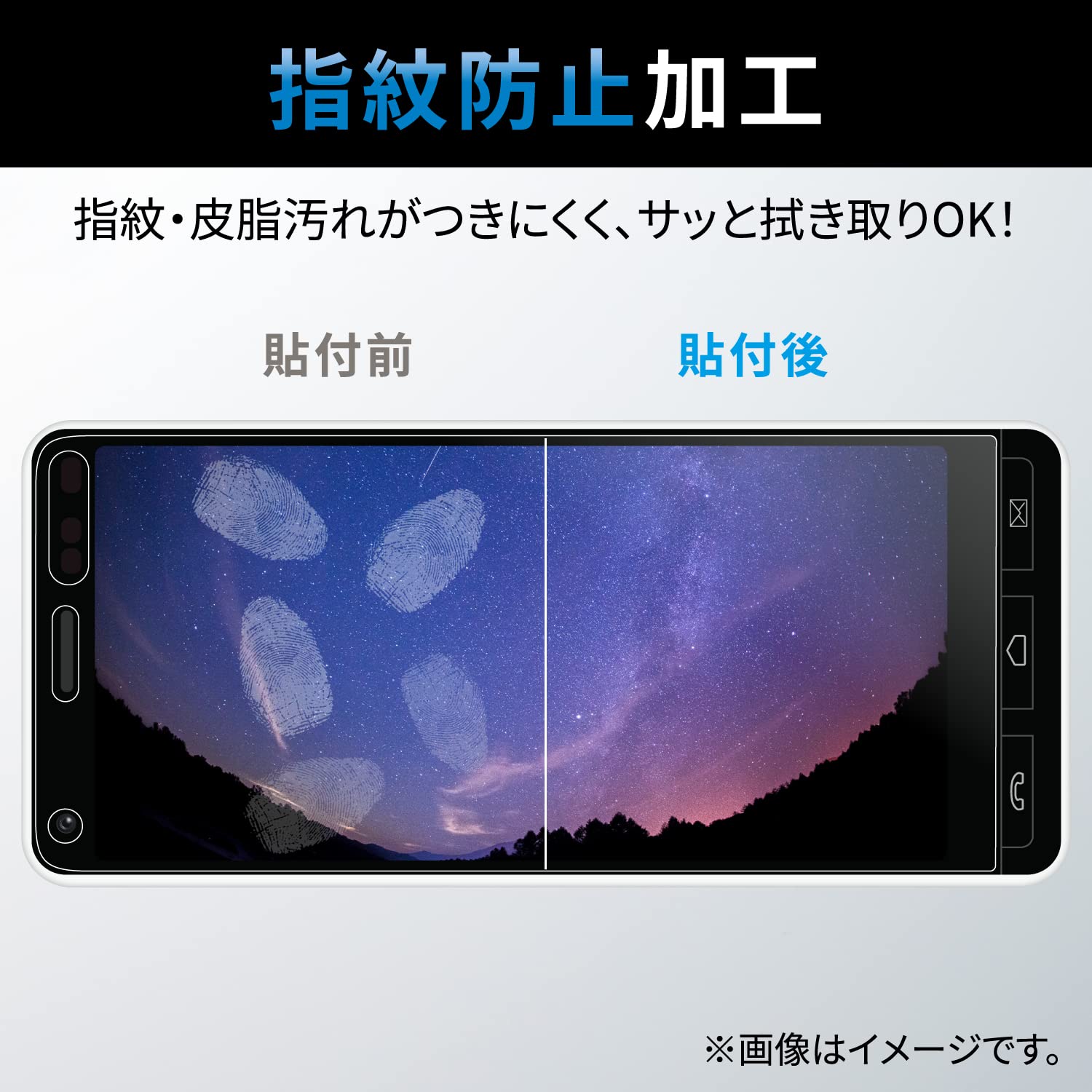 【 仕様 】■ 対応機種:かんたんスマホ2+/かんたんスマホ2/BASIO4(KYV47)■ セット内容:液晶保護フィルム(防指紋反射防止仕様)×1、ホコリ取りシール×1、クリーニングクロス×1■ 材質:接着面:シリコン、外側:PET【 説明 】■ かんたんスマホ2+/かんたんスマホ2/BASIO4(KYV47)の液晶画面をキズや汚れから守る、指紋防止、反射防止の液晶保護フィルムです。■ 光の映り込みを抑え、見やすい画面を実現する反射防止タイプです。■ 貼り付け面にシリコン皮膜をコーティングし、接着剤や両面テープを使わずに貼り付け可能な自己吸着タイプです。貼りやすく、貼り直しも可能です。■ 時間の経過とともに気泡が目立たなくなる特殊吸着層を採用したエアーレスタイプです。■ 指紋・皮脂汚れが付きにくく、残った場合でも簡単に拭き取れる指紋防止加工を施しています。■ 端末の形状に合わせたサイズにカット済みなので、パッケージから取り出してすぐに使用可能です。■ フィルムを貼ったままでも本体操作ができるタッチスクリーン入力に対応しています。■ フィルムに抗菌機能を施し、細菌の繁殖を防ぎます。■ ※抗菌とは、製品の表面上に存在する細菌の増殖を抑制することです。JIS(日本産業規格)では抗菌加工されていない製品の表面と比較して、細菌を99%以上抑制出来ている場合、その製品に抗菌効果があると規定しています。■ フィルムを装着した状態で画面内指紋認証機能を利用する場合は、装着した状態で指紋の再登録をおこなってください。【商品に関するお問い合わせ】エレコム総合インフォメーションセンターTEL. 0570-084-465FAX. 0570-050-012受付時間 / 10:00~19:00 年中無休