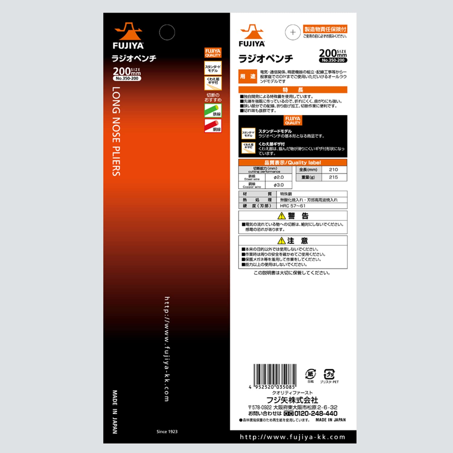 フジ矢(Fujiya) ラジオペンチ 200mm 350-200