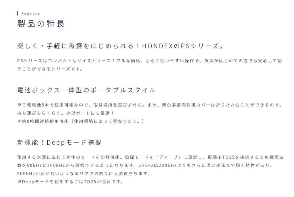 初心者でも楽しく簡単に、誰でも手軽に魚探をはじめられる、シンプル機能を搭載し、使いやすさに特化したリーズナブルな魚探シリーズ【HONDEX PSシリーズ】!