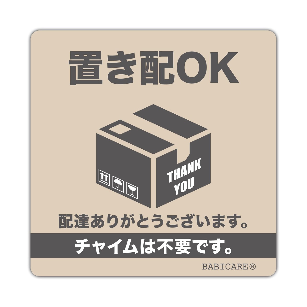 サイズ仕様: 80x80mmのコンパクトサイズで、玄関ドアや壁面に最適な置き配サイン